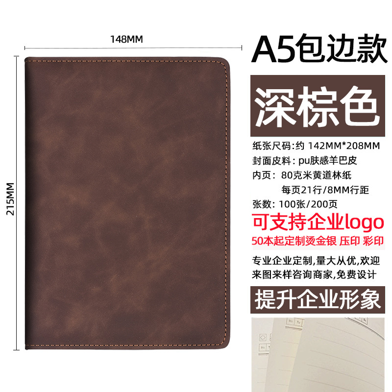 Кожа овчины A5 с ощущением мягкости на ощупь, темно-коричневая [с серебряной пряжкой по краю]