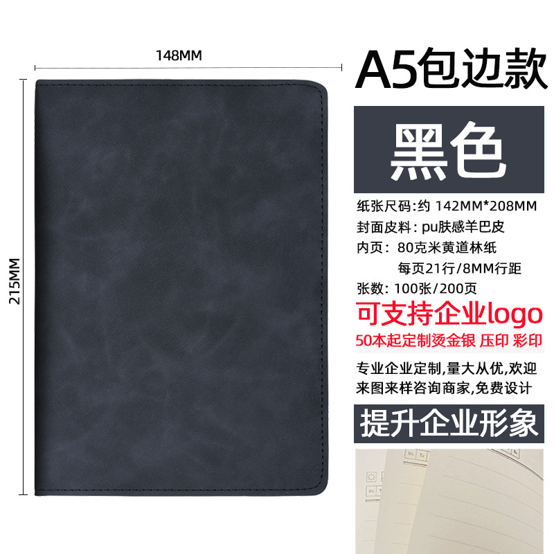 (Подарочный набор) A5 из мягкой на ощупь овечьей кожи, черный [обвязка края, китайская шикарная пряжка]