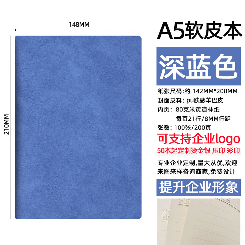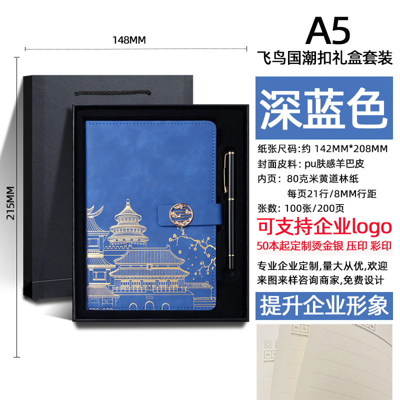 (Подарочный набор) А5, мягкая на ощупь овечья кожа, темно-синий [обвязка, китайская шикарная пряжка]