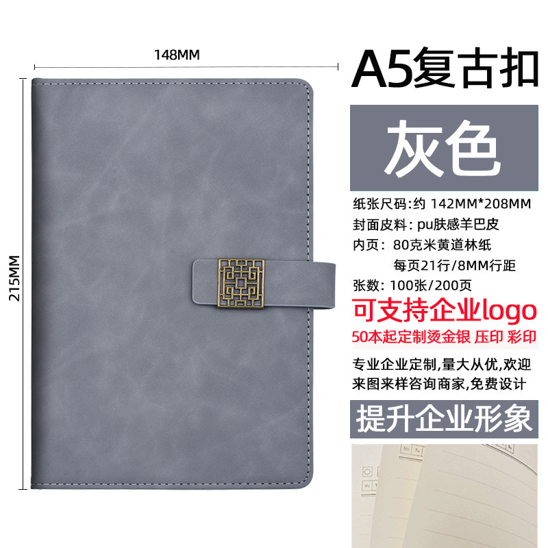 (Подарочный набор) A5 из натуральной овечьей кожи с эффектом "кожи", серый [Обложка с китайским шикарным замком]