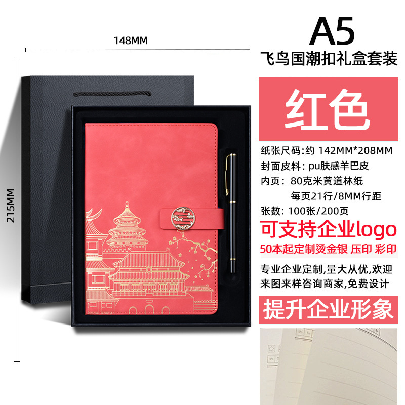 (Подарочный набор) А5, мягкая на ощупь овечья кожа, красная [обвязка с китайской шикарной пряжкой]