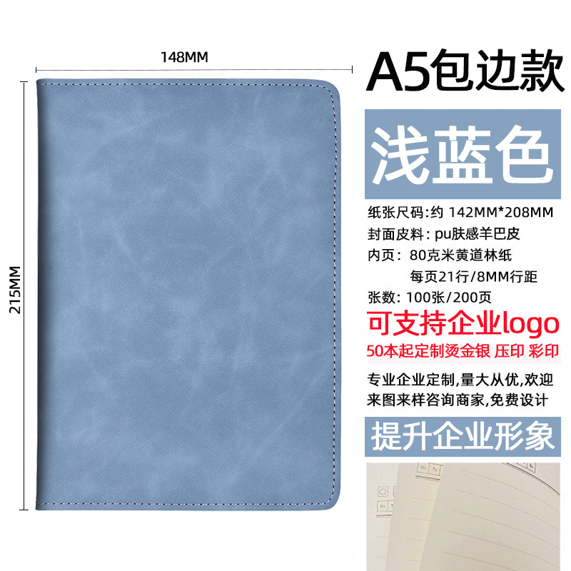 A5 овчина с ощущением кожи, светло-синяя [китайская модная пряжка с краями]