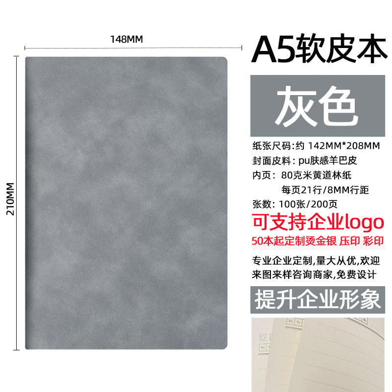 A5 овчина с эффектом кожи серого цвета [стиль с окантовкой]