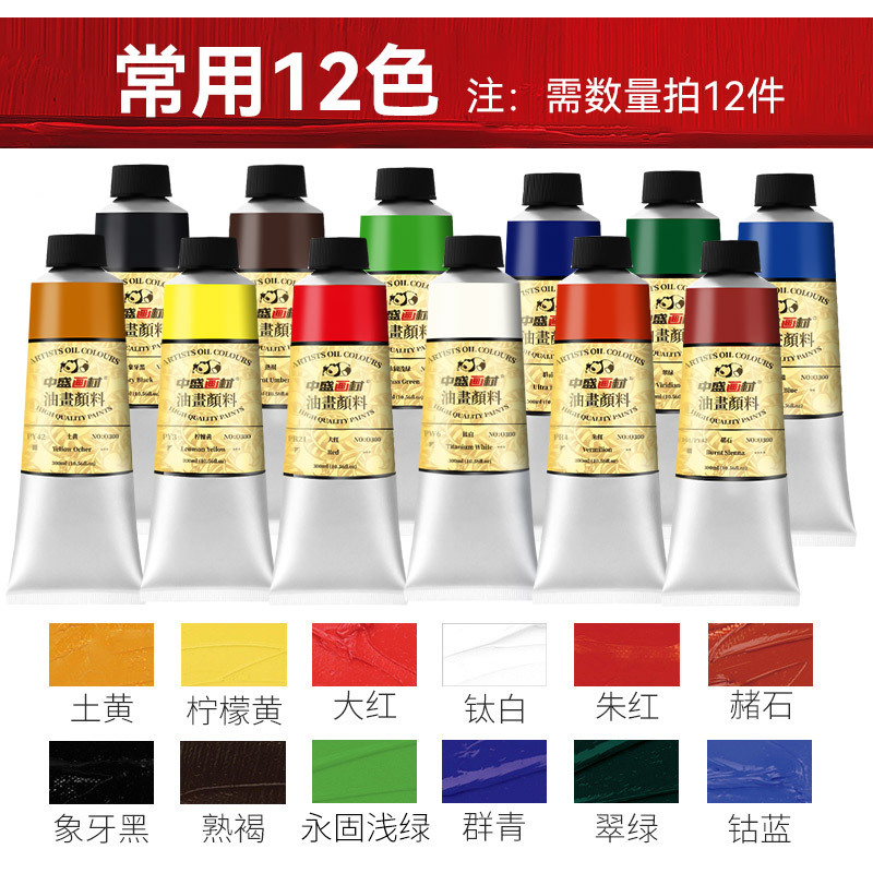 Zhongsheng Материал для рисования Масляная краска 300 мл Большая трубка Инструмент для рисования маслом для начинающих Материал для масляной живописи Чернильная краска