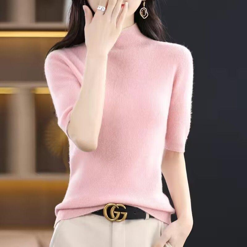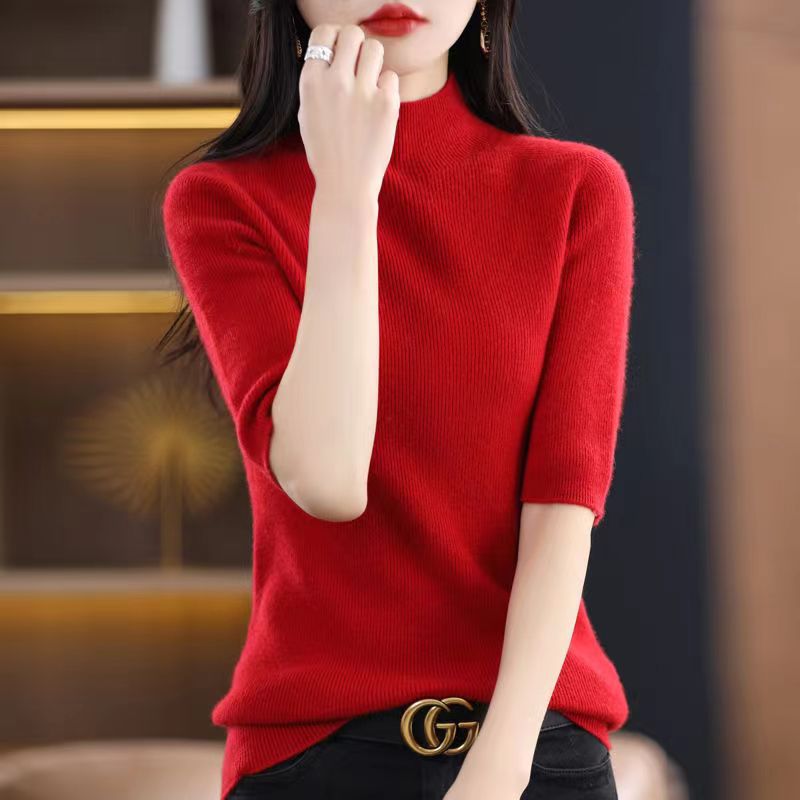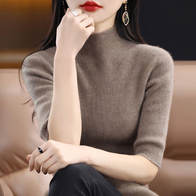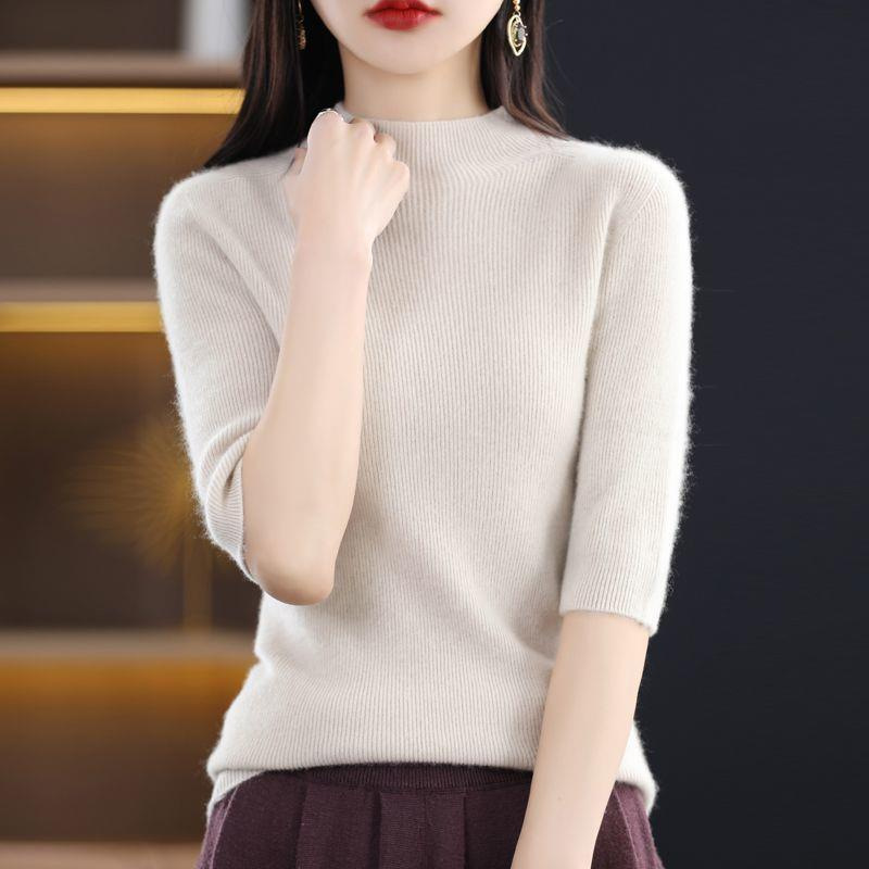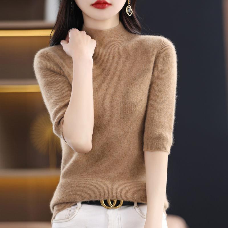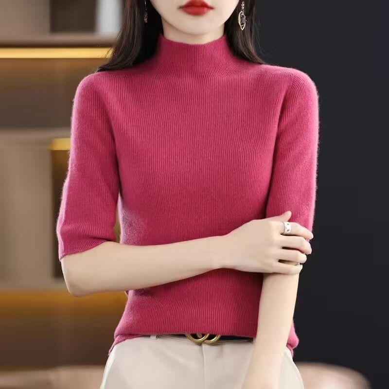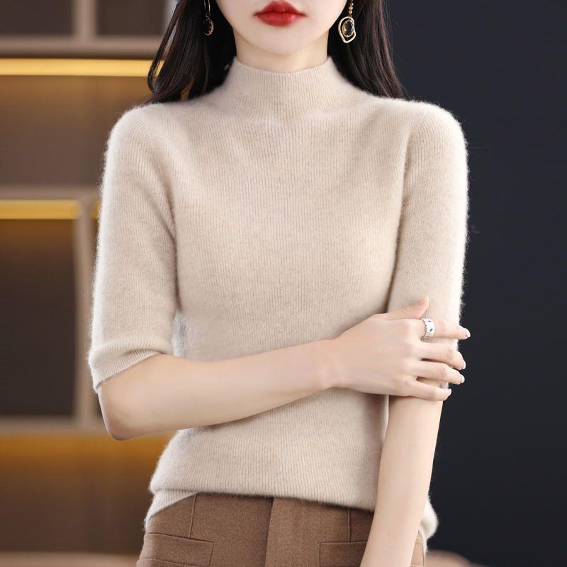 Главная страница > Модный женский базовый слой с рукавами три четверти, весенне-осенний свитер со средним рукавом, полувысоким воротником, облегающий крой, элитный трикотажный свитер с короткими рукавами и половиной рукавов.