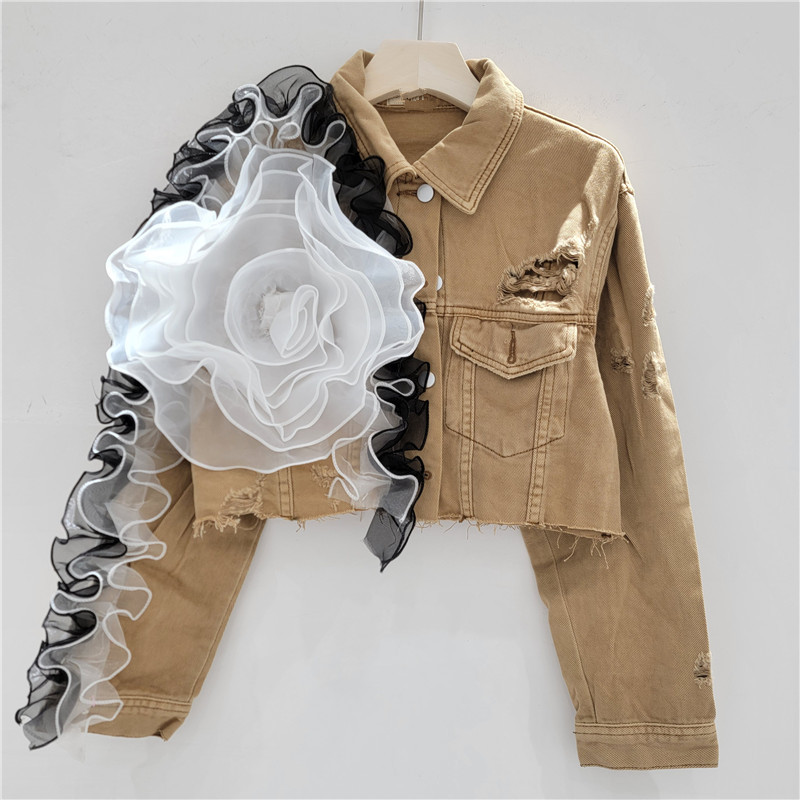 Главная страница > Европейская станция Heavy Industries сетевая пряжа Сшивание индивидуальности дыры дизайн короткий джинсовая куртка женская свободная уличная куртка