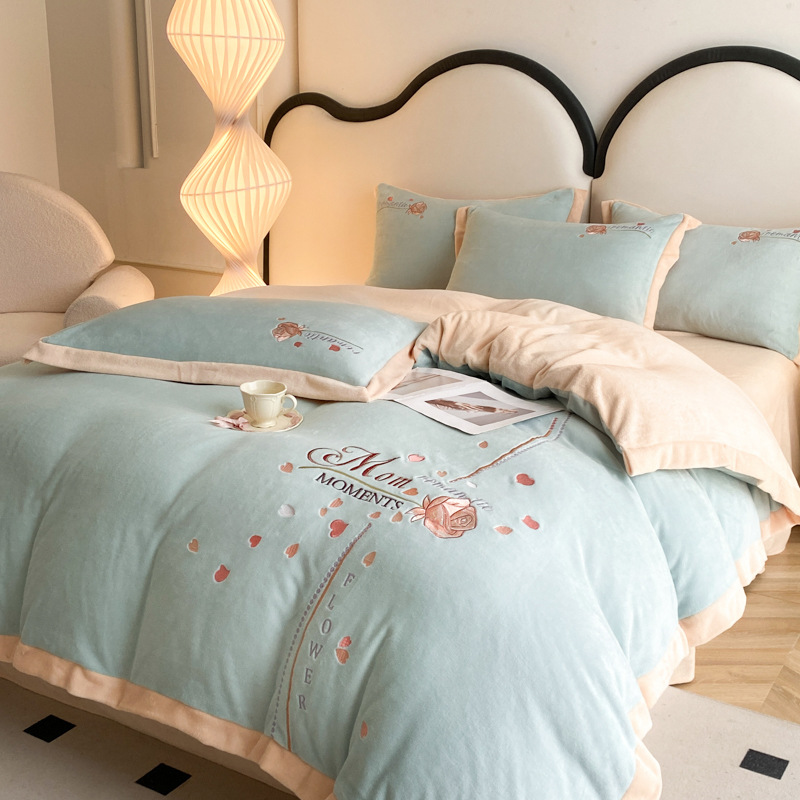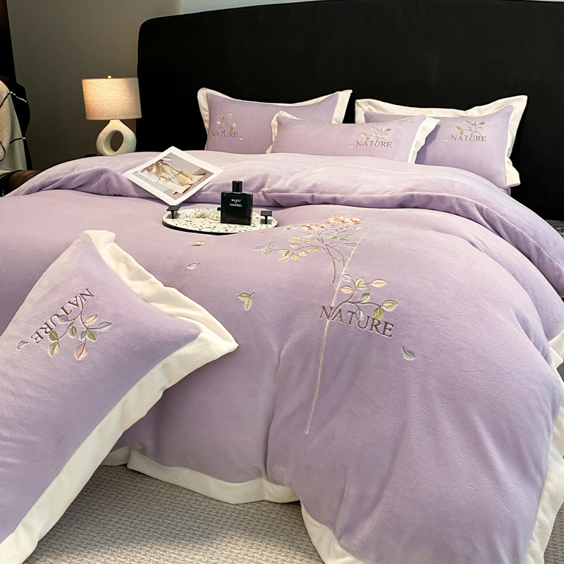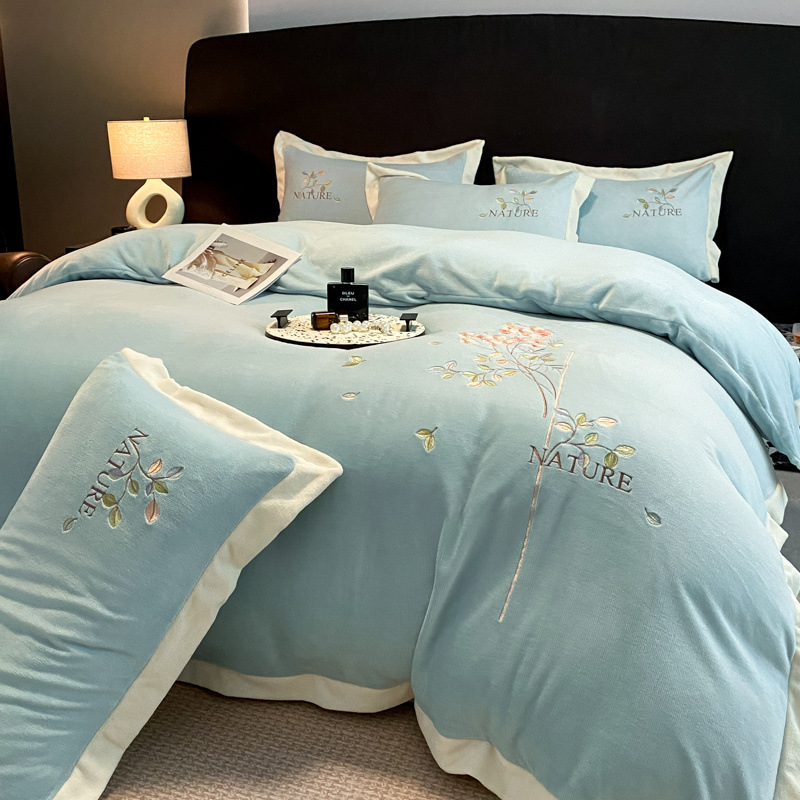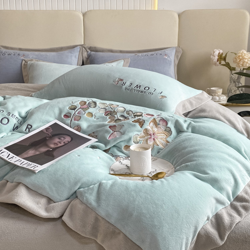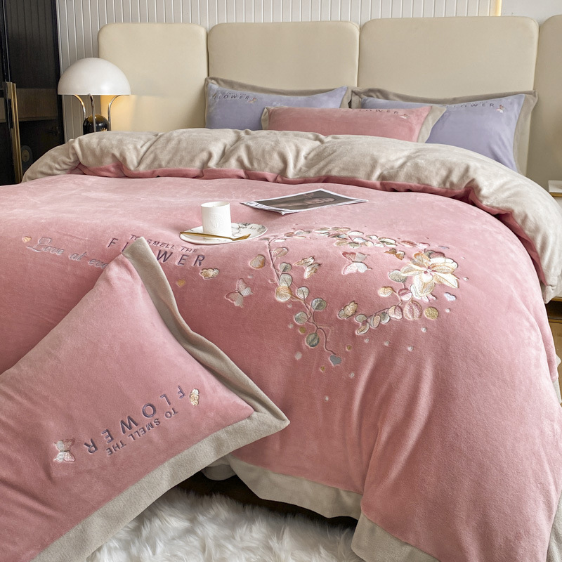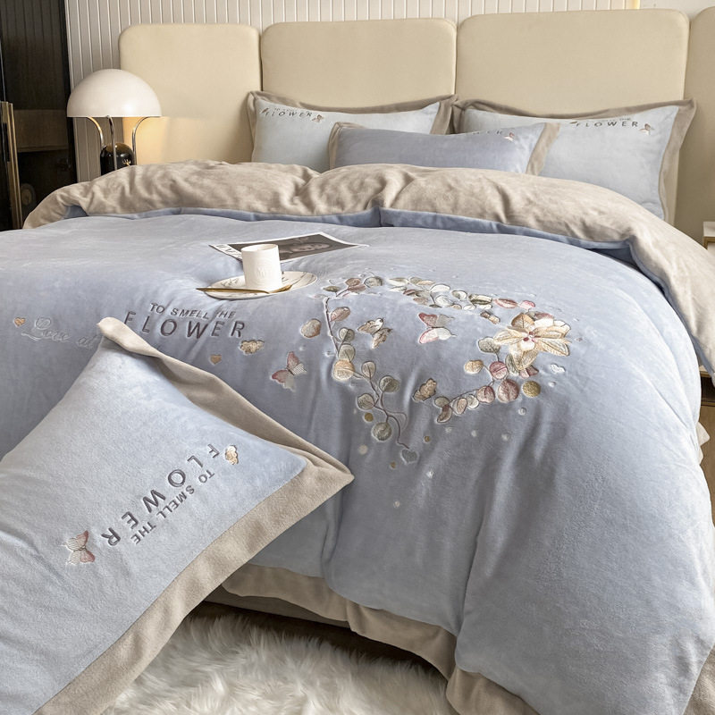 Главная страница > Легкий экстравагантный ветер вышитый молочный бархат набор из четырех частей зимой толстый бархат премиум-комфорт простыни одеяло теплая набор из трех частей