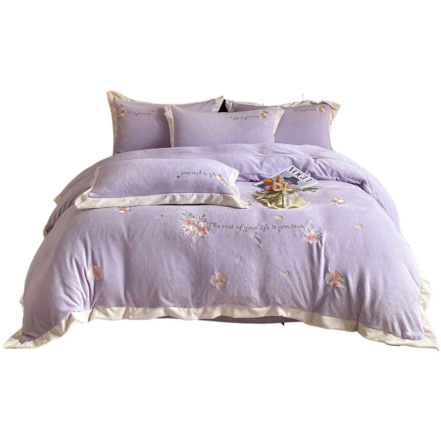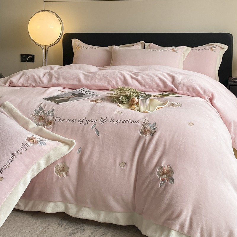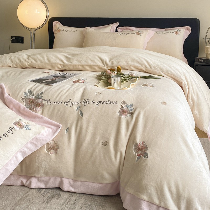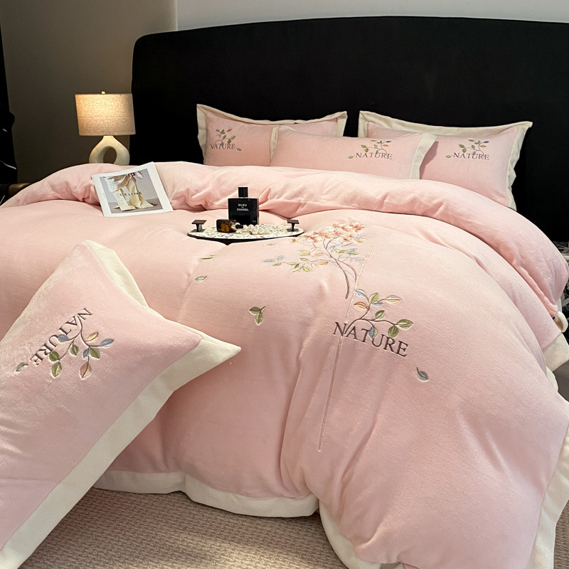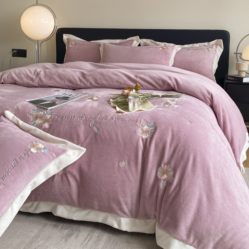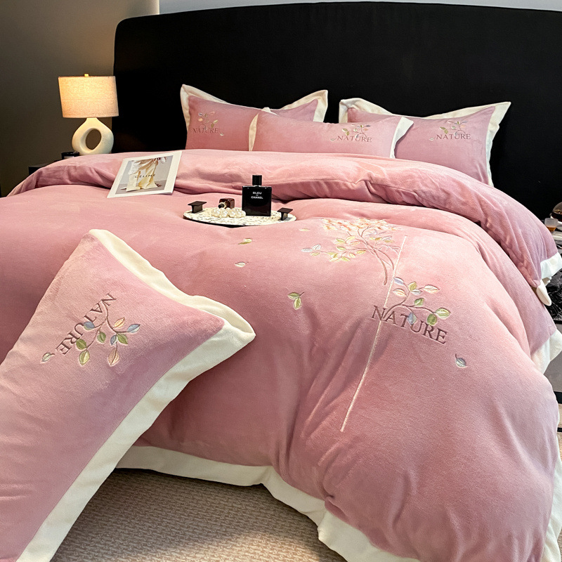 Главная страница > Легкий экстравагантный ветер вышитый молочный бархат набор из четырех частей зимой толстый бархат премиум-комфорт простыни одеяло теплая набор из трех частей