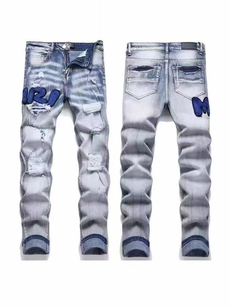 Главная страница > Тенденция Повседневный патч Сшивка Ноги Ноги Личные Штаны Тенденции Новые дыры Вышитые джинсы Мужские
