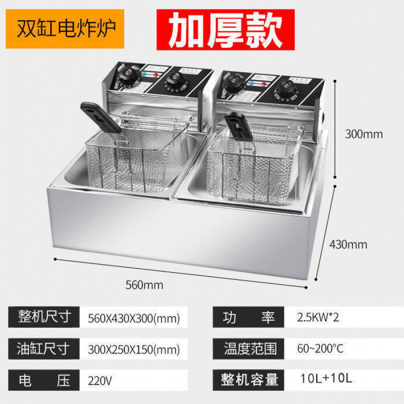 Утолщенная и удлиненная электрическая фритюрница объемом 22 л + 2 корзины для жарки + крышка
