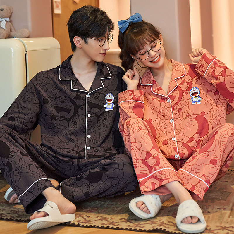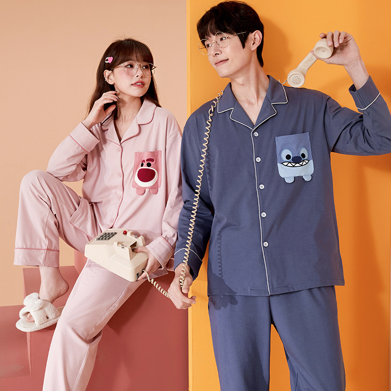Главная страница > Новая весенняя и осенняя пара пижамы женский хлопок милый мультяшный домашний костюм мужской длинный рукав корейский набор плюс размер