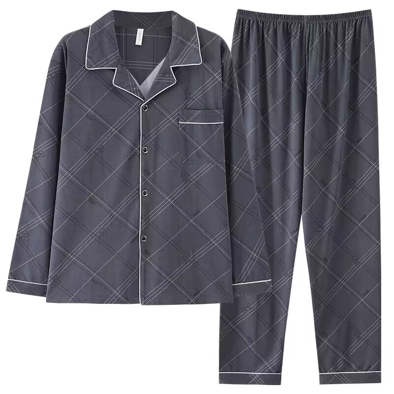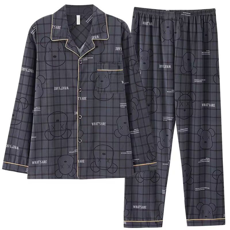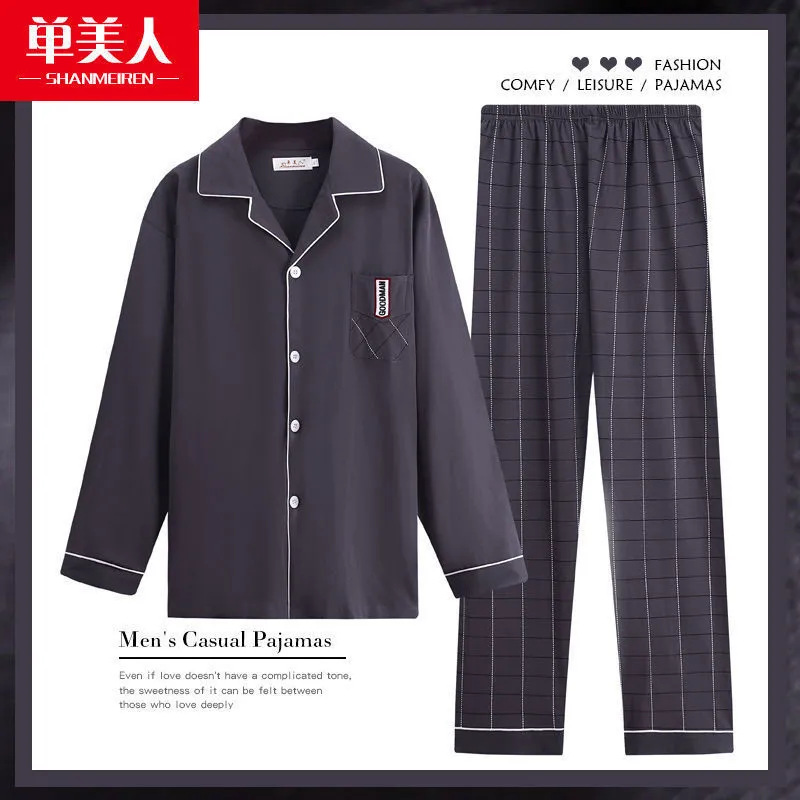 Главная страница > Новая Мужская пижама больших размеров из 100% хлопка, весна и осень, модная Высококачественная домашняя одежда в Корейском стиле с длинными рукавами