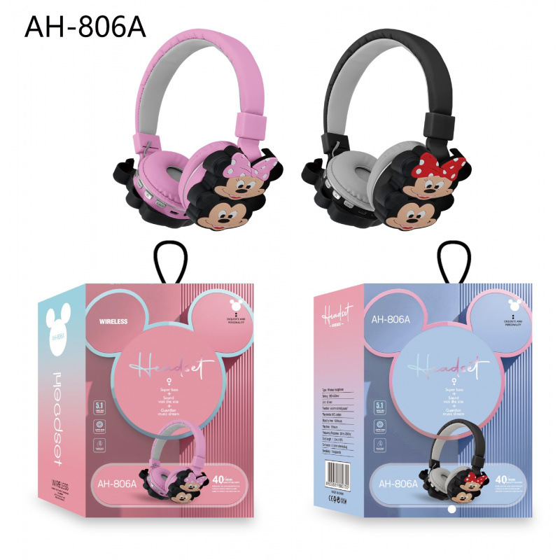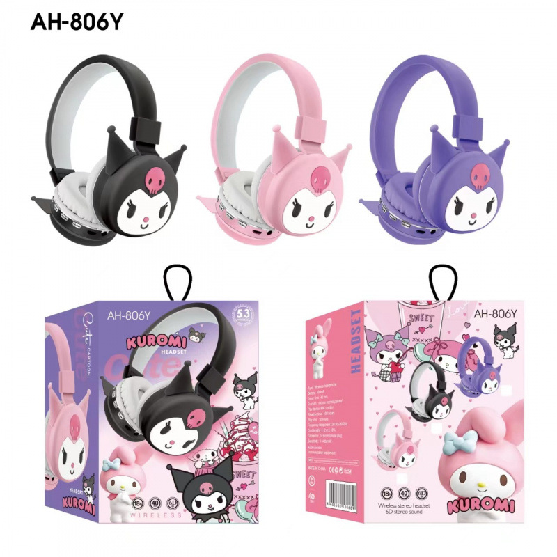 AH-806 Bluetooth-гарнитура с креплением на голову, детская мультяшная гарнитура для трансграничной внешней торговли, оптовая продажа, фабрика Stitch Kuromi, прямые продажи