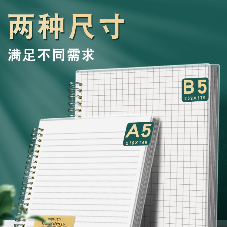 Главная страница > Блокнот Deli LPB580-02PP спиральный, квадратные/горизонтальные линии, прозрачная спираль, формат B5, канцелярия для студентов, оптом