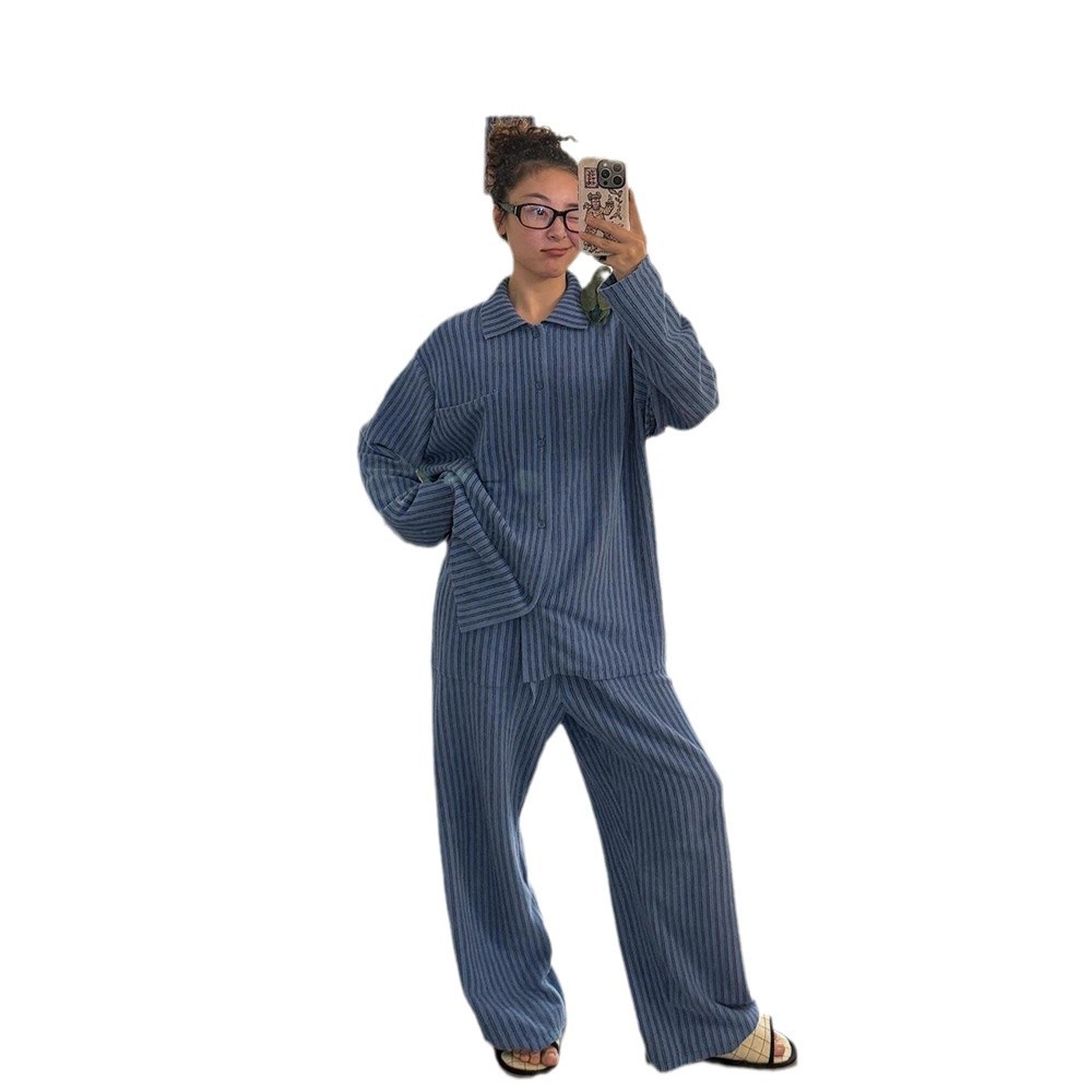 Корейская минималистская полосатая немецкоязычная пижама женская осень-зима 2024 новая повседневная домашняя одежда большого размера костюм можно носить на улице