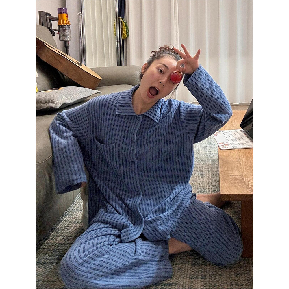 Главная страница > Корейская минималистская полосатая немецкоязычная пижама женская осень-зима 2024 новая повседневная домашняя одежда большого размера костюм можно носить на улице