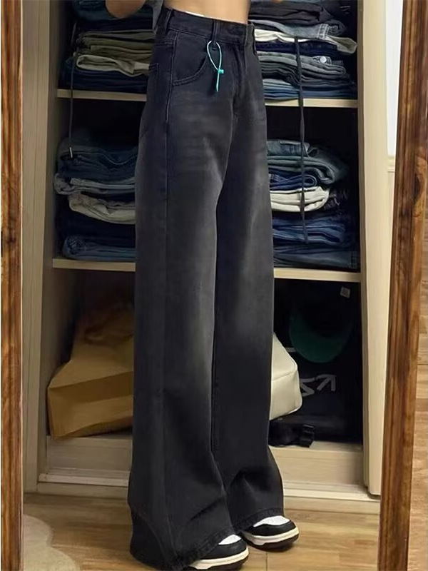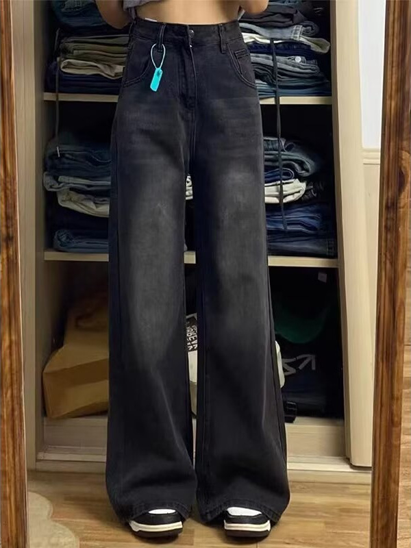 Главная страница > Американские ретро черные джинсы большого размера женские весенние новые толстые мм свободные тонкие высокие талии прямые брюки с широкими ногами