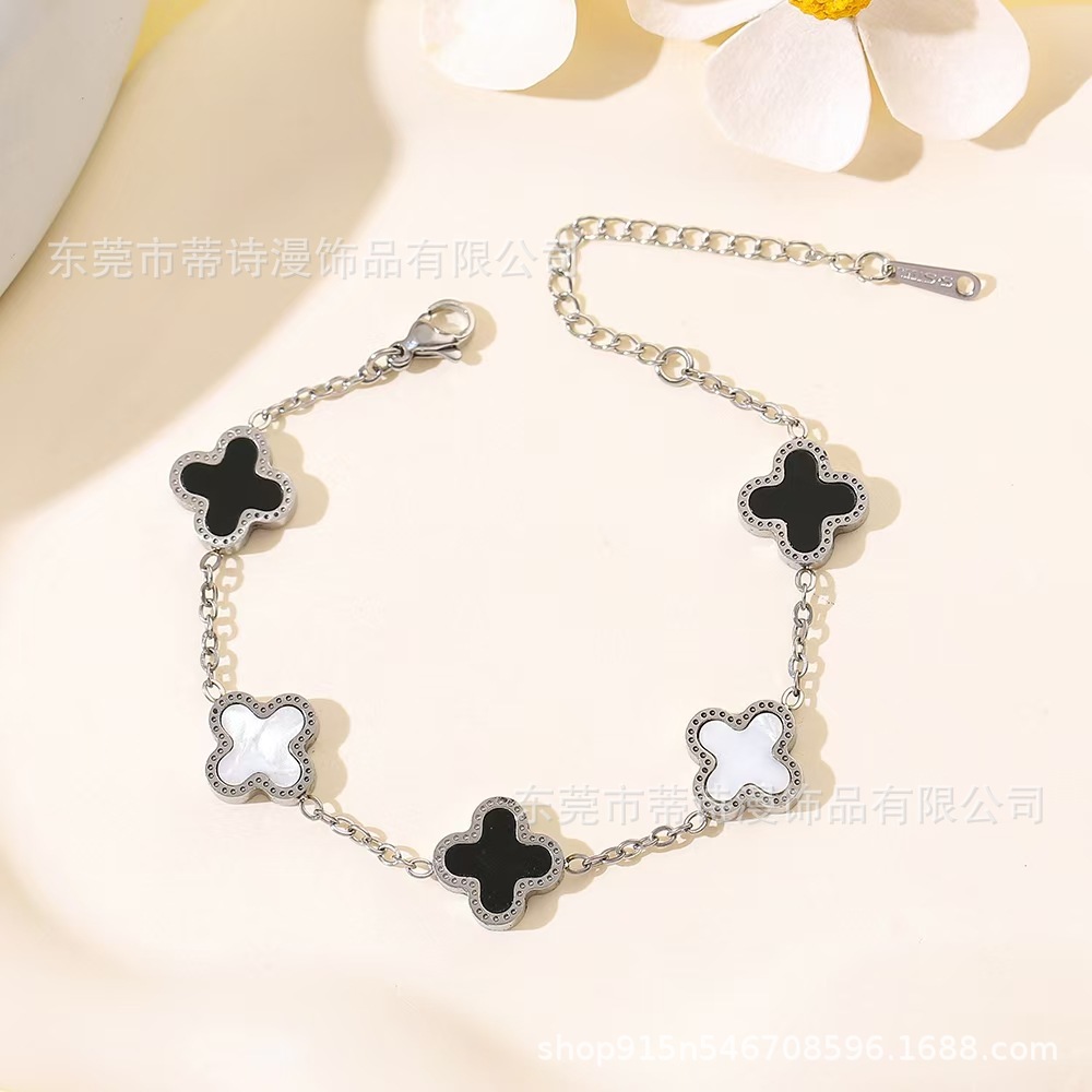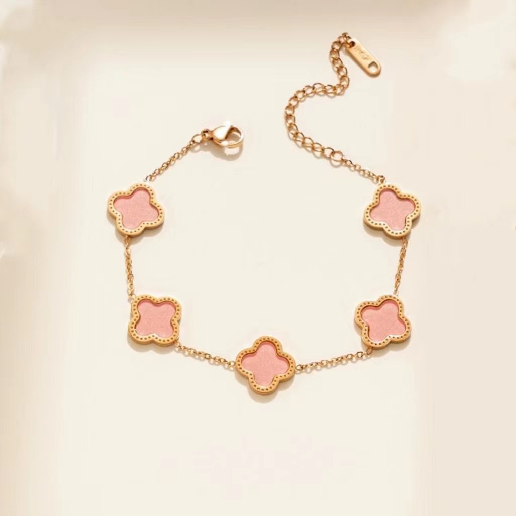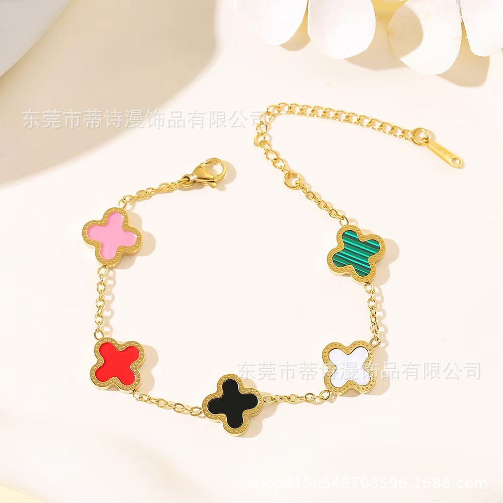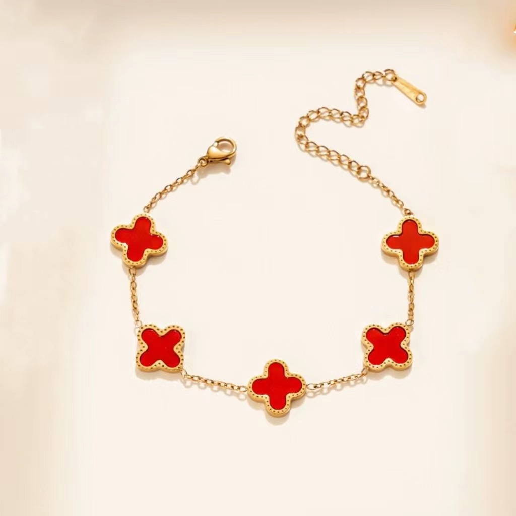 Двусторонний пятицветочный браслет с четырехлистным клевером Чистая красная маленькая красная книга, звук дрожания, горячая цепочка из 18-каратного золота, трансграничные ювелирные изделия из титановой стали, оптовая продажа