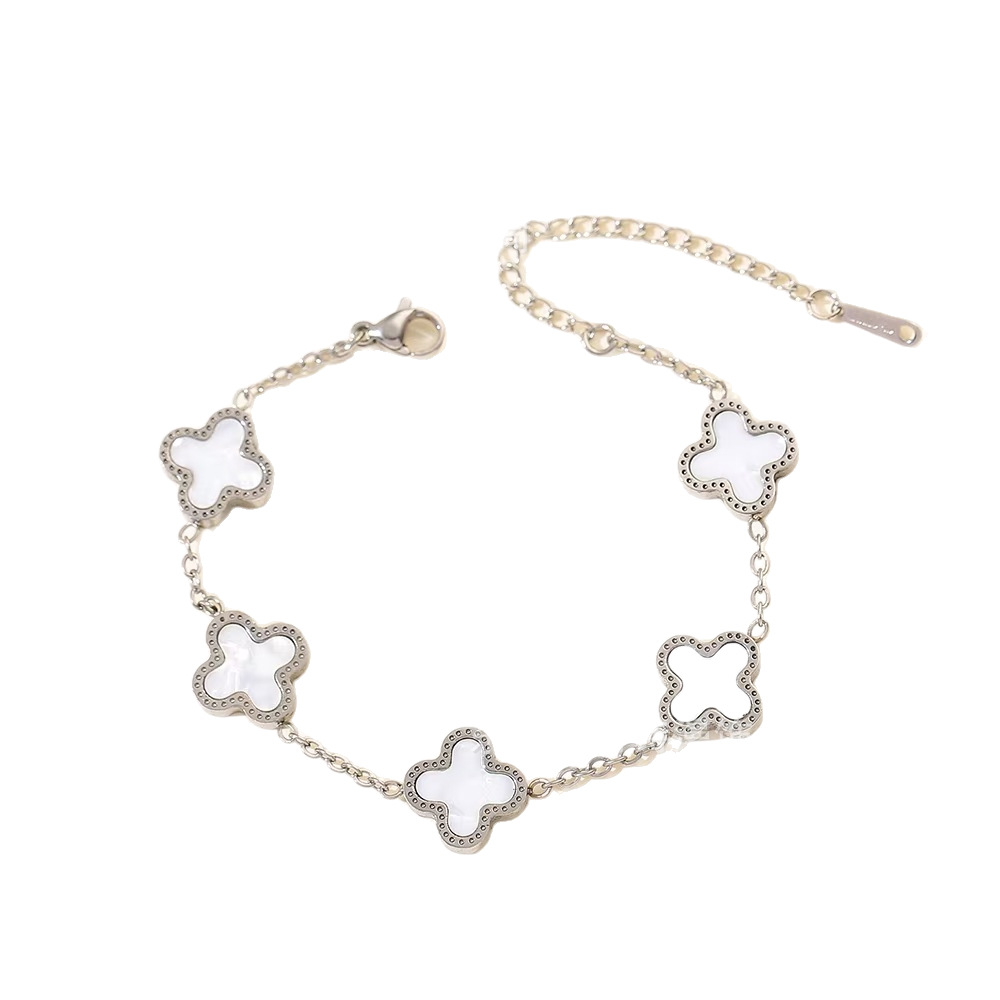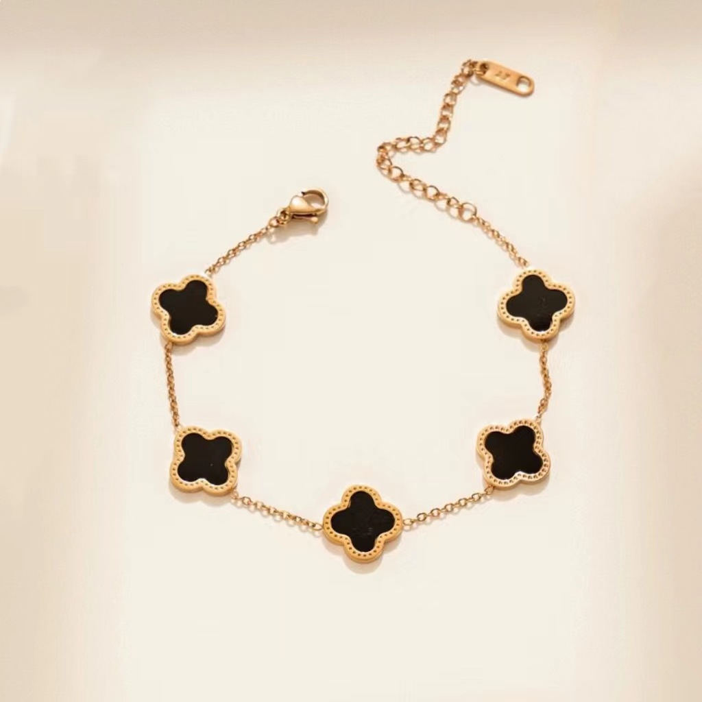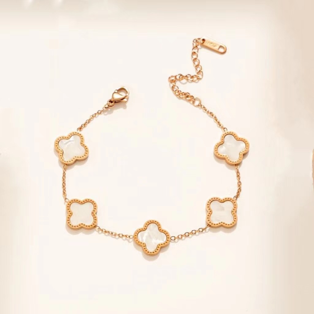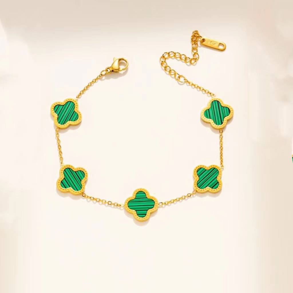Двусторонний пятицветочный браслет с четырехлистным клевером Чистая красная маленькая красная книга, звук дрожания, горячая цепочка из 18-каратного золота, трансграничные ювелирные изделия из титановой стали, оптовая продажа