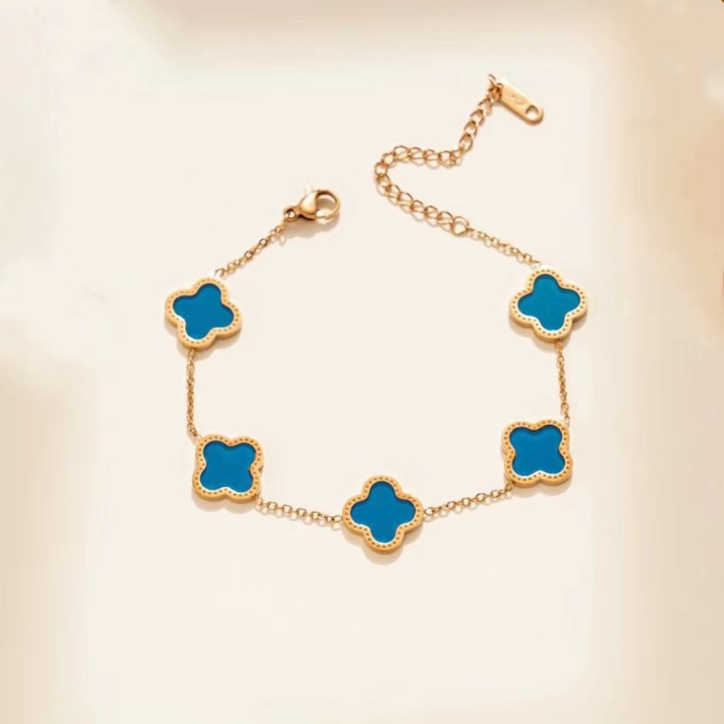 Главная страница > Двусторонний пятицветочный браслет с четырехлистным клевером Чистая красная маленькая красная книга, звук дрожания, горячая цепочка из 18-каратного золота, трансграничные ювелирные изделия из титановой стали, оптовая продажа