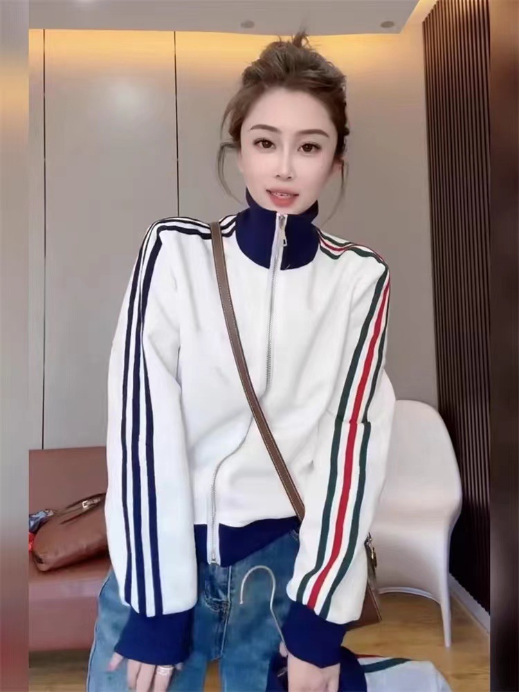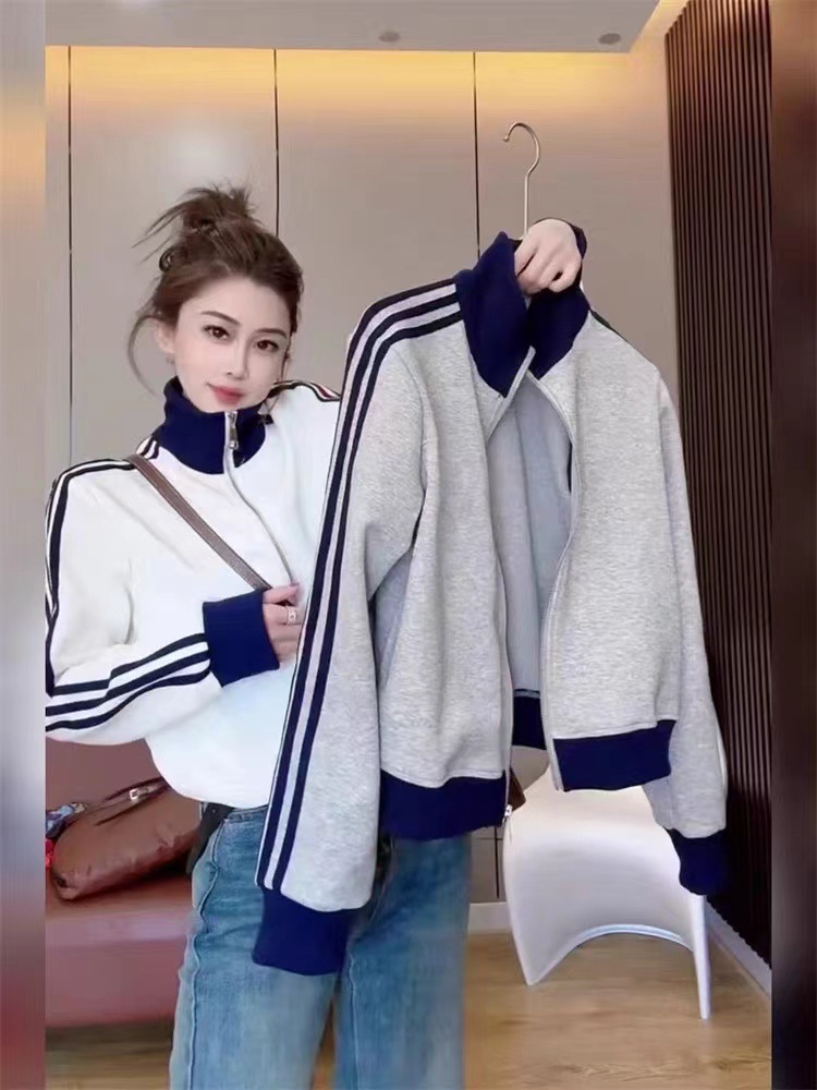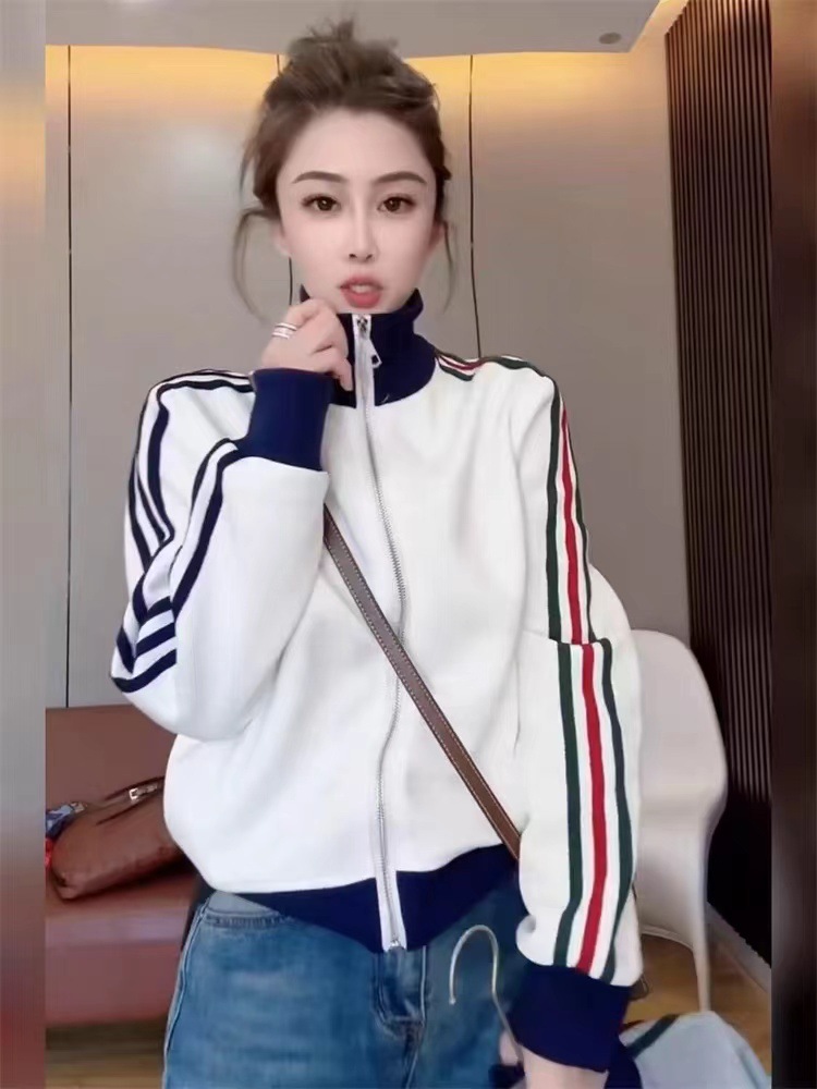 Главная страница > Корейская версия трехполосного кардиган с молнией повседневная свитер женский 2024 осень новая мода дикий кардиган топ куртка