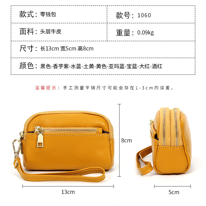 Главная страница > Новая ручная маленькая сумка-кошелек из воловьей кожи первого слоя, простая Мини-Маленькая кожаная портмоне с тремя молниями для женщин