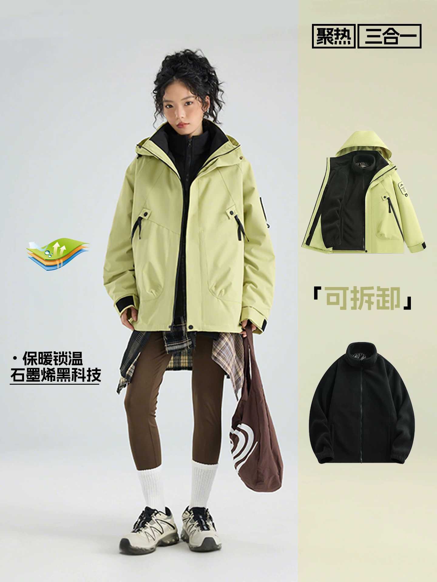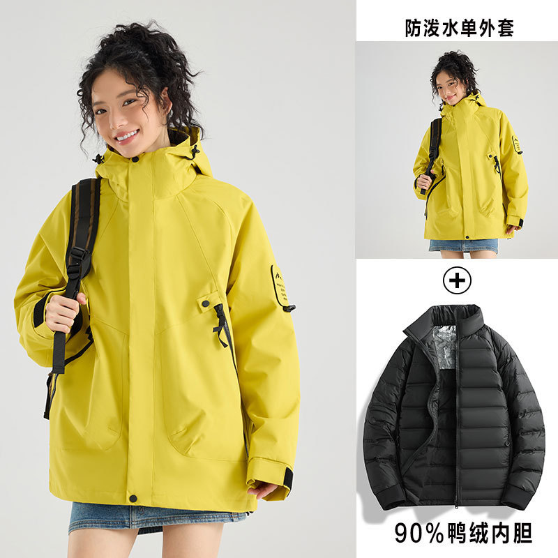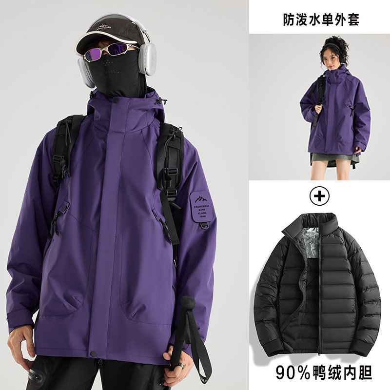Главная страница > Куртка в стиле Луо Туо для женщин, мужская куртка для активного отдыха и альпинизма 3-в-1, ветрозащитная, водонепроницаемая, теплый комплект из двух предметов, пальто большого размера.