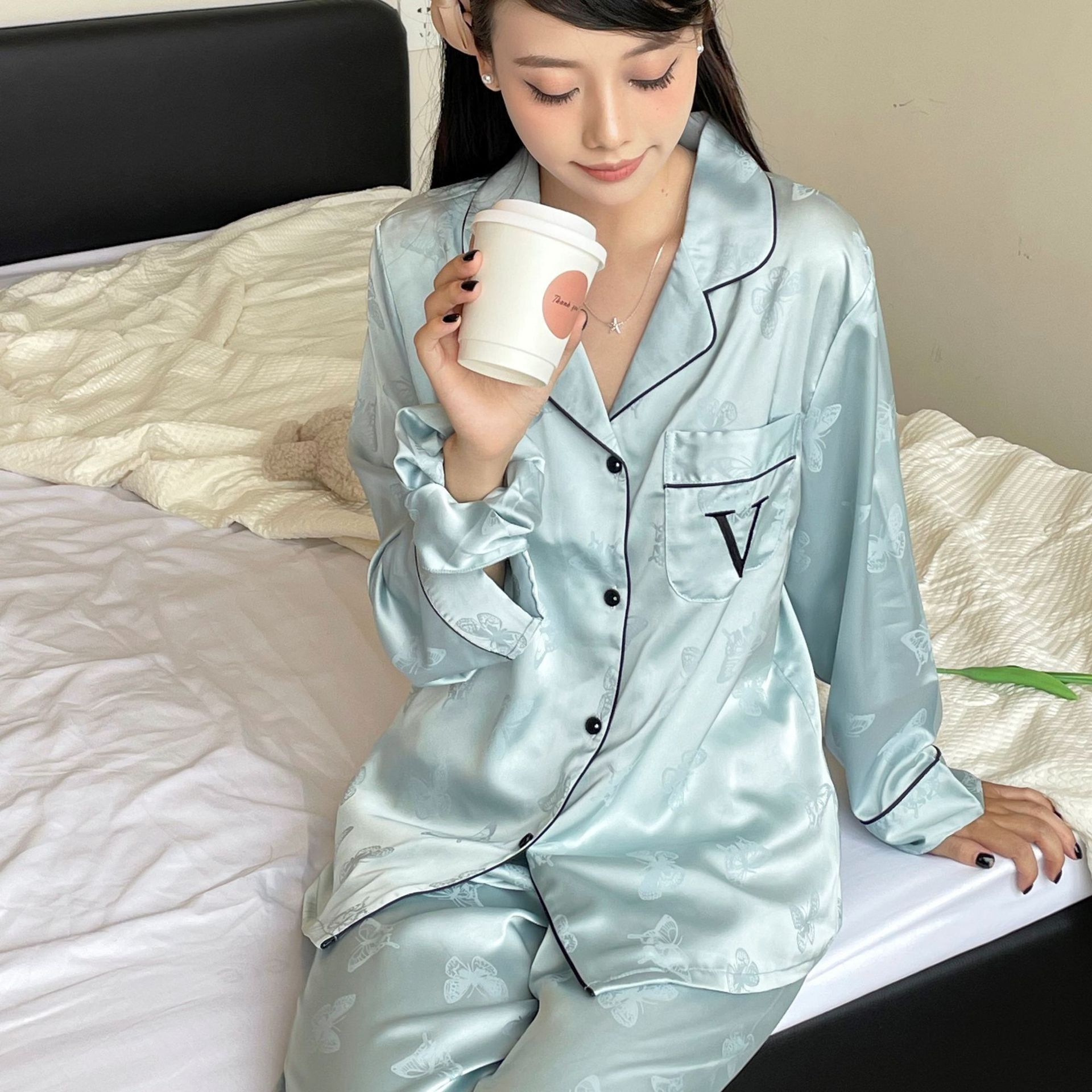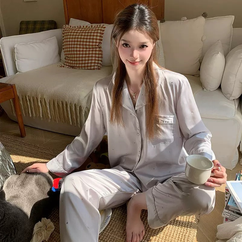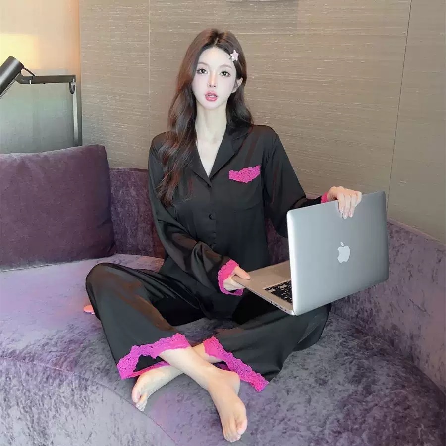 Главная страница > Светло-розовая лента против водяного шелка из ледяного шелка пижамы женская весна и осень продвинутые чувства с длинными рукавами
