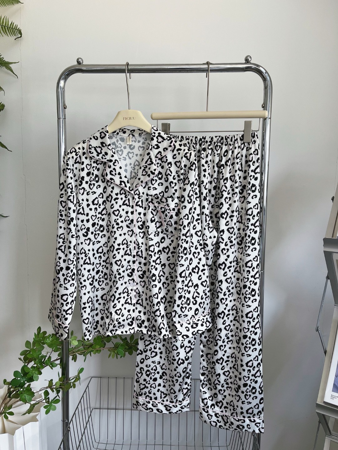 Комплект с V-образным вырезом и воротником-фанфолд — длинный рукав и брюки