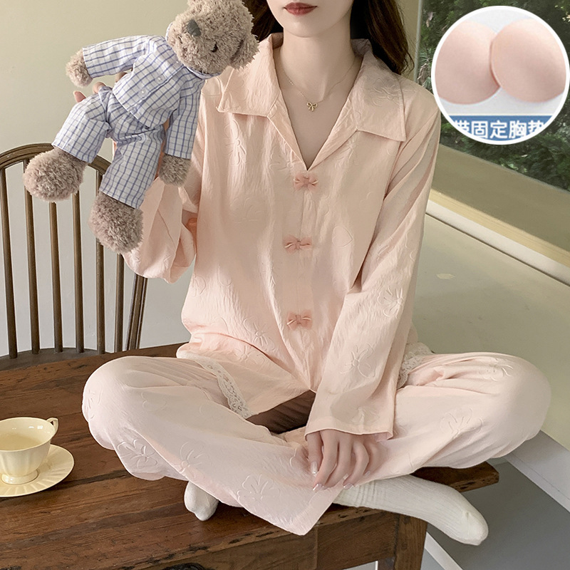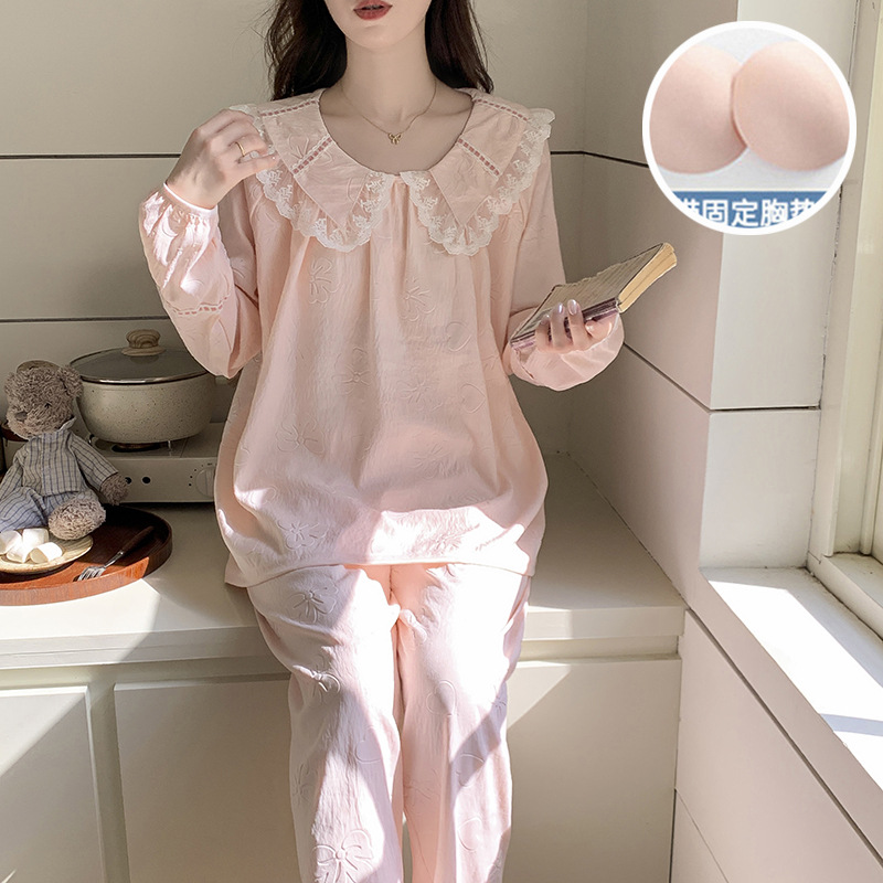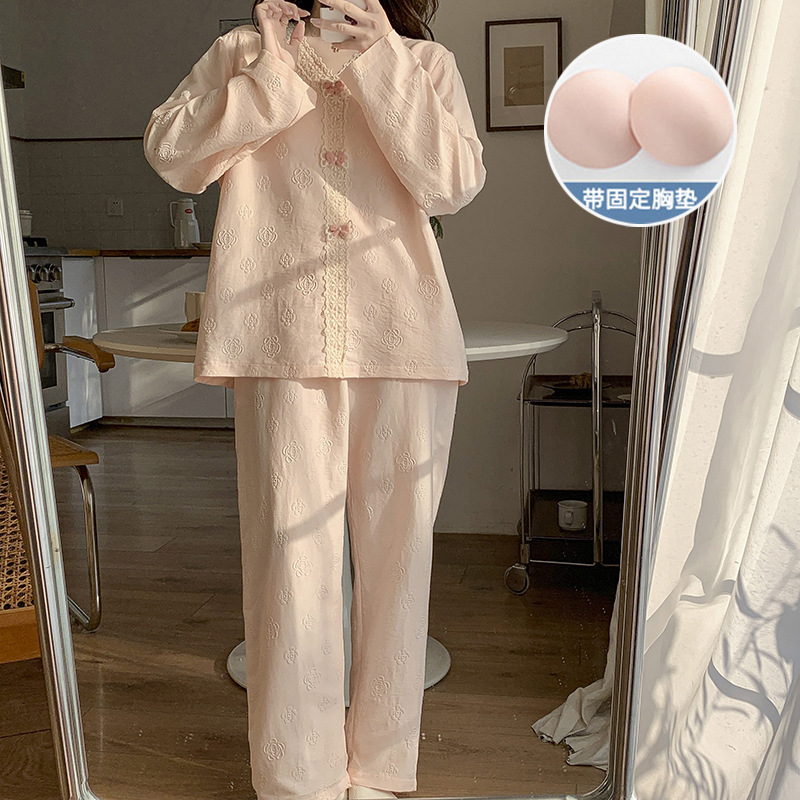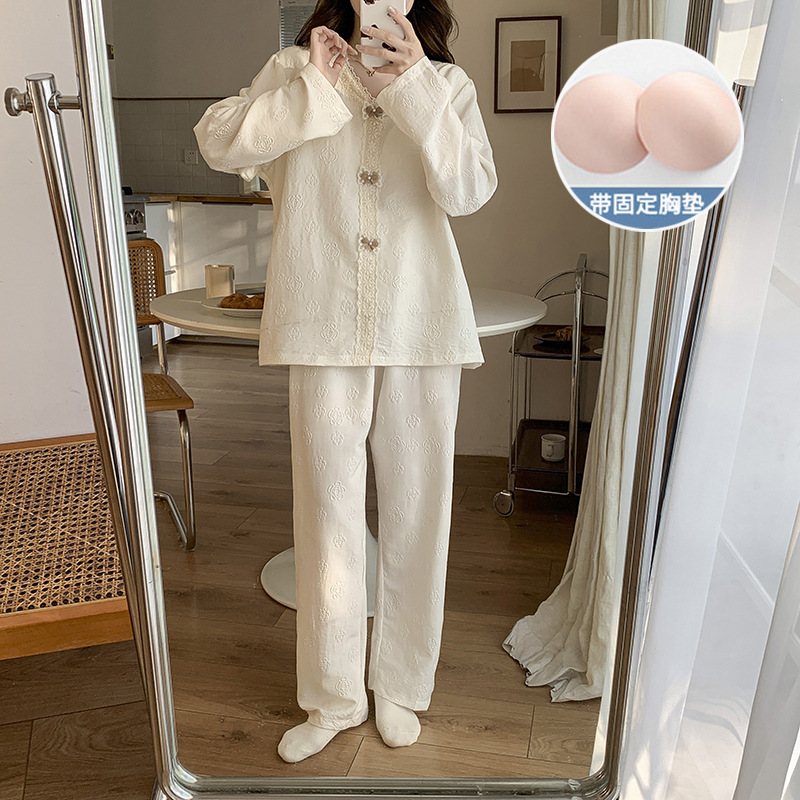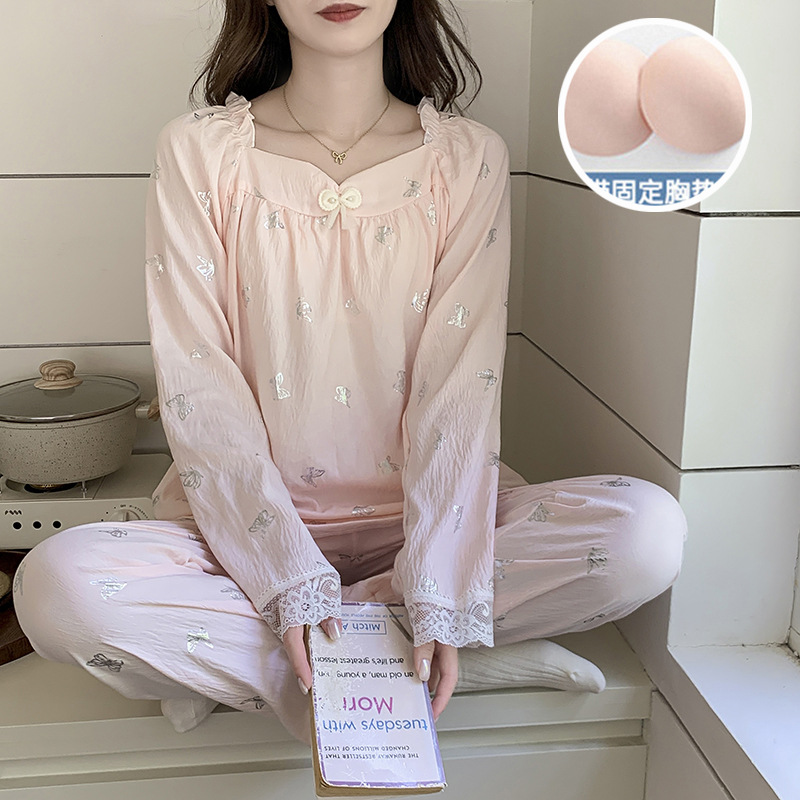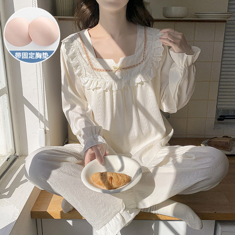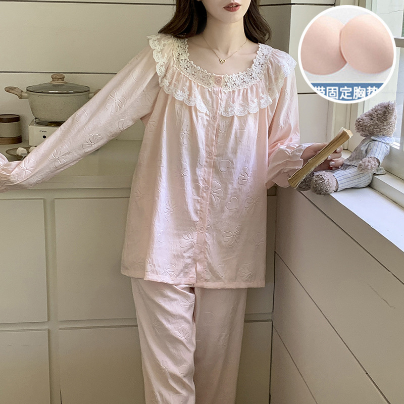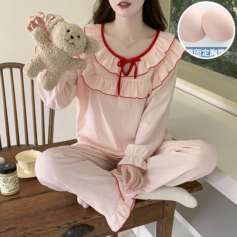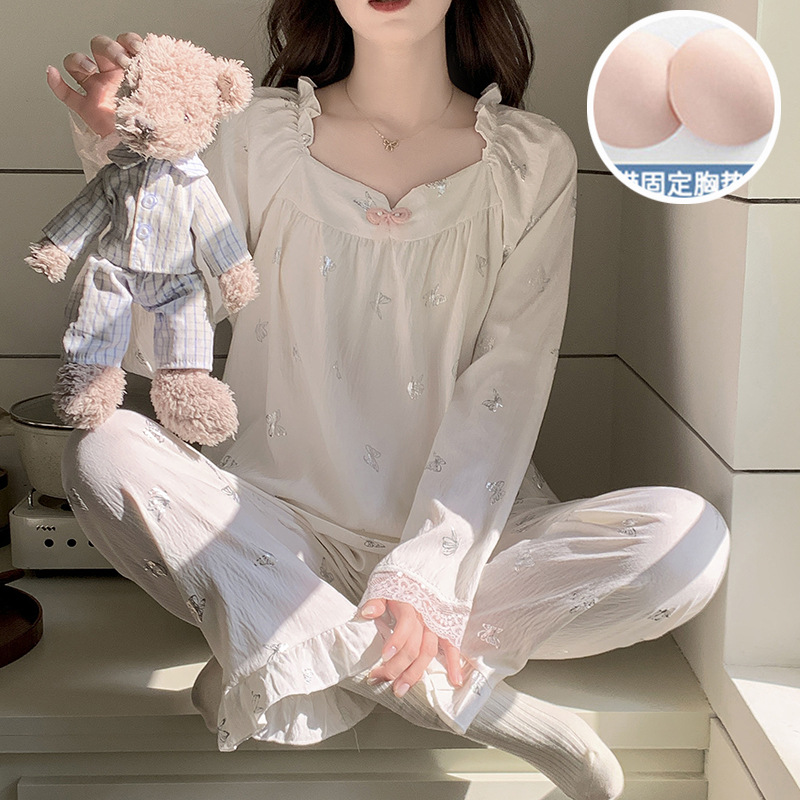 Облака хлопчатобумажной пижамы женские нагрудные коврики весна и осень новая корейская версия сладкие ins ветер свободный стиль с длинными рукавами набор домашней одежды