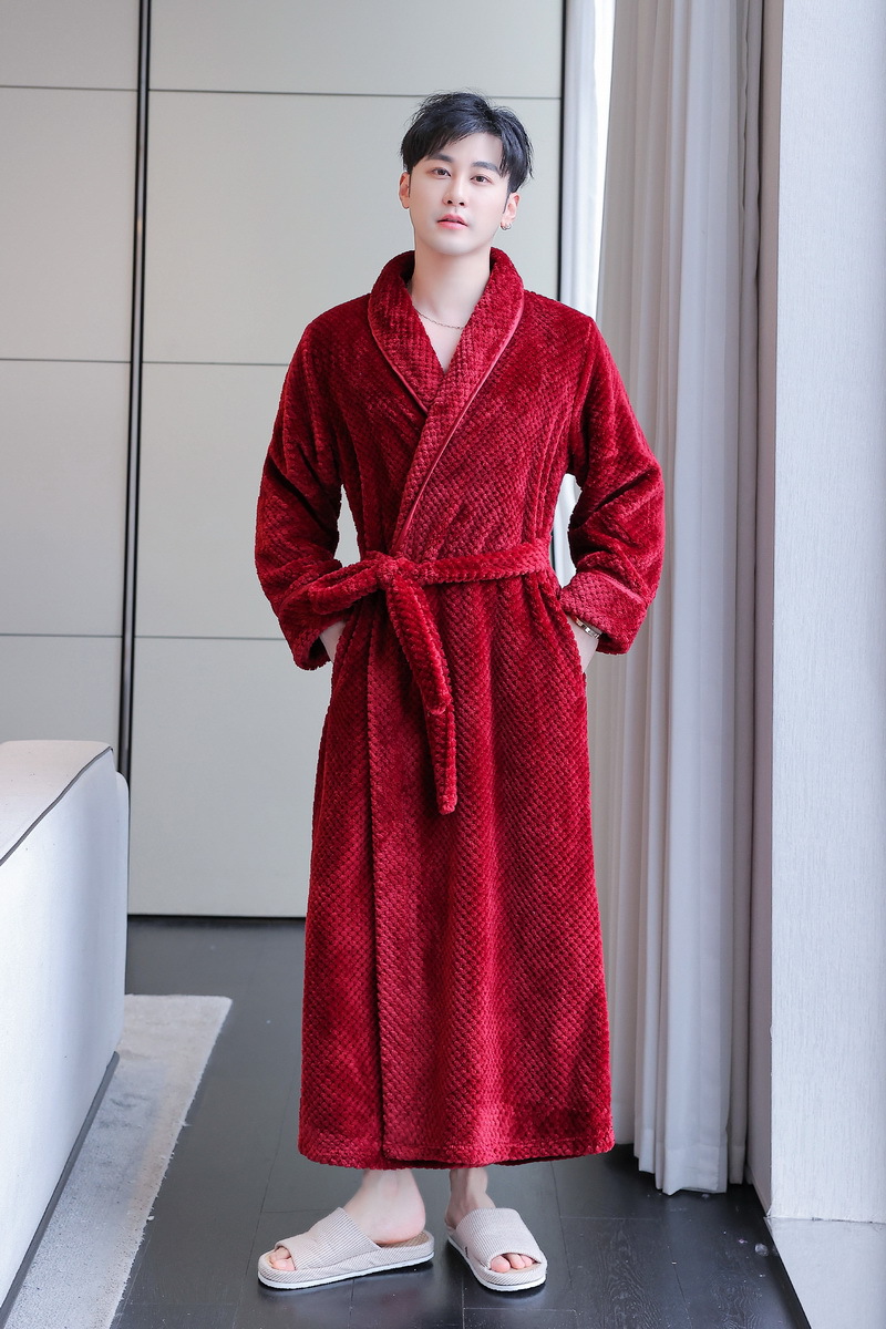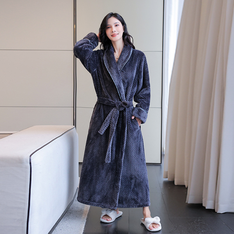 Главная страница > Осенне-зимний длинный халат, фланелевая пижама, женская ночная рубашка для пары, удобная домашняя одежда, утолщенный халат, халат для отеля