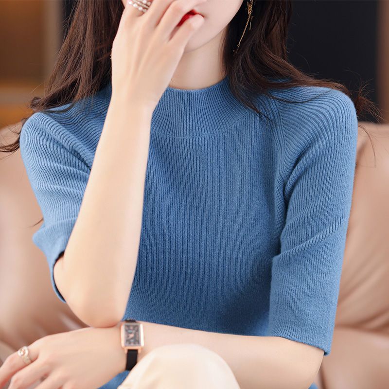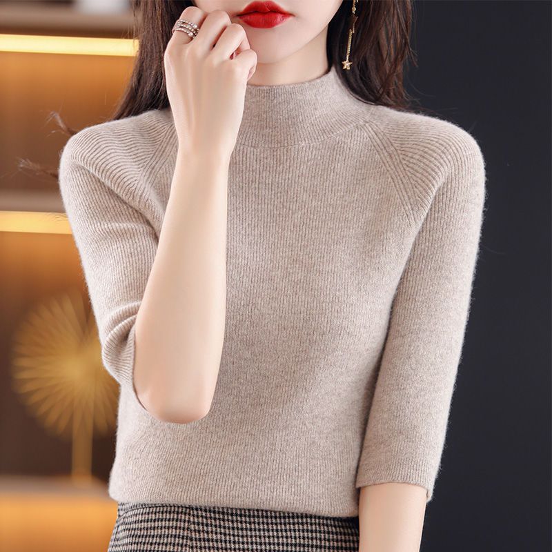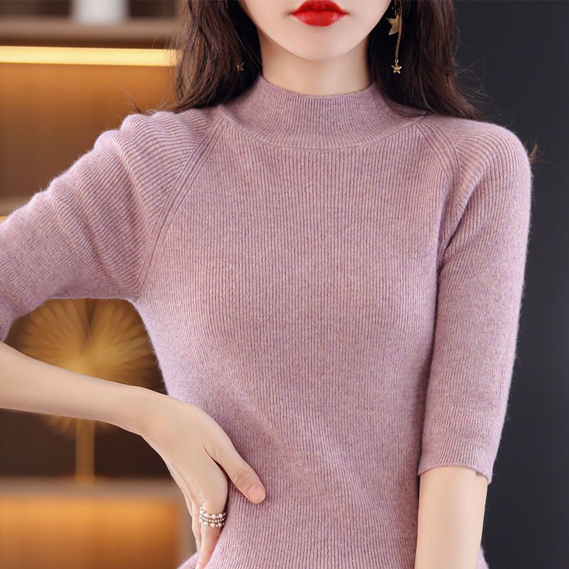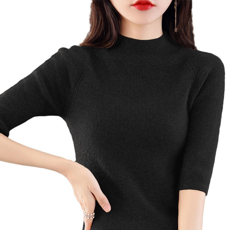 Иностранный костюм с пятью рукавами в тонком рукаве с полувысоким воротником вязаный свитер нижний свитер