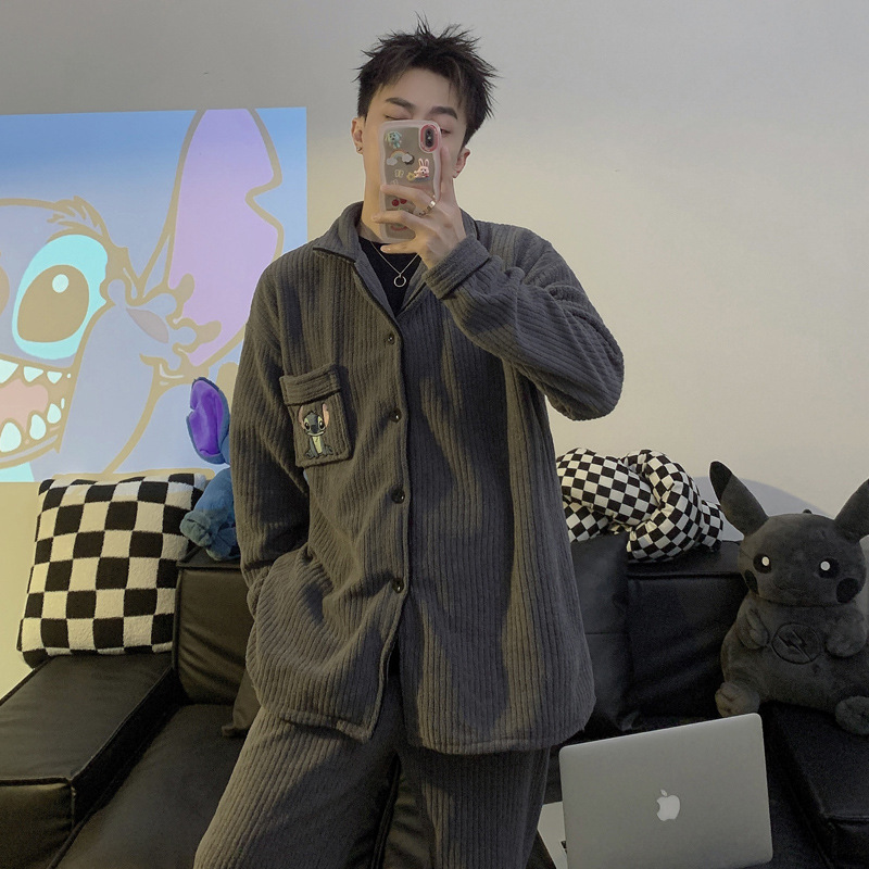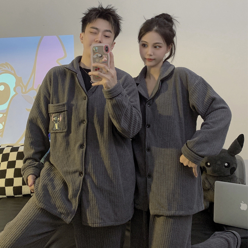 Главная страница > Пижамы с вышивкой для мужчин и женщин, утолщенный коралловый флис, осенне-зимний мультяшный Снежный флис, милая пара, домашняя одежда, костюм