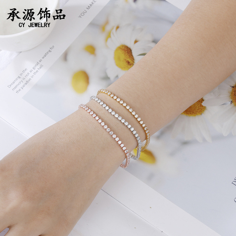 Главная страница > Трансграничный горячий 2,5 мм Однорядный женский браслет с кристаллами бриллианта, инкрустированный 3A круглым цирконием, Теннисный наборный браслет оптом