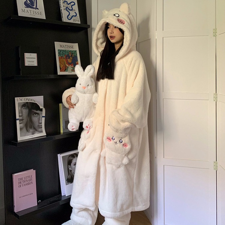Главная страница > Коралловая флисовая Пижама Giicawa chiikawa, Женская осенне-зимняя длинная ночная рубашка, утолщенный кардиган на флисовой подкладке, костюм