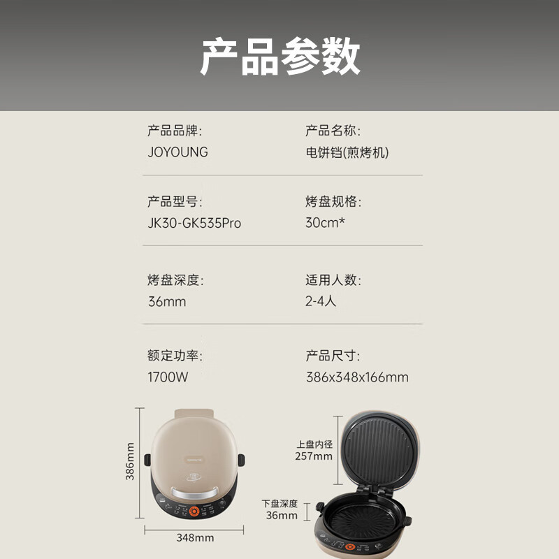 Jiuyang электрический блин 36 мм глубокая противень 0 фтортитановый фарфор ультра-износостойкое масло 1700W огневая JK30-GK535Pro