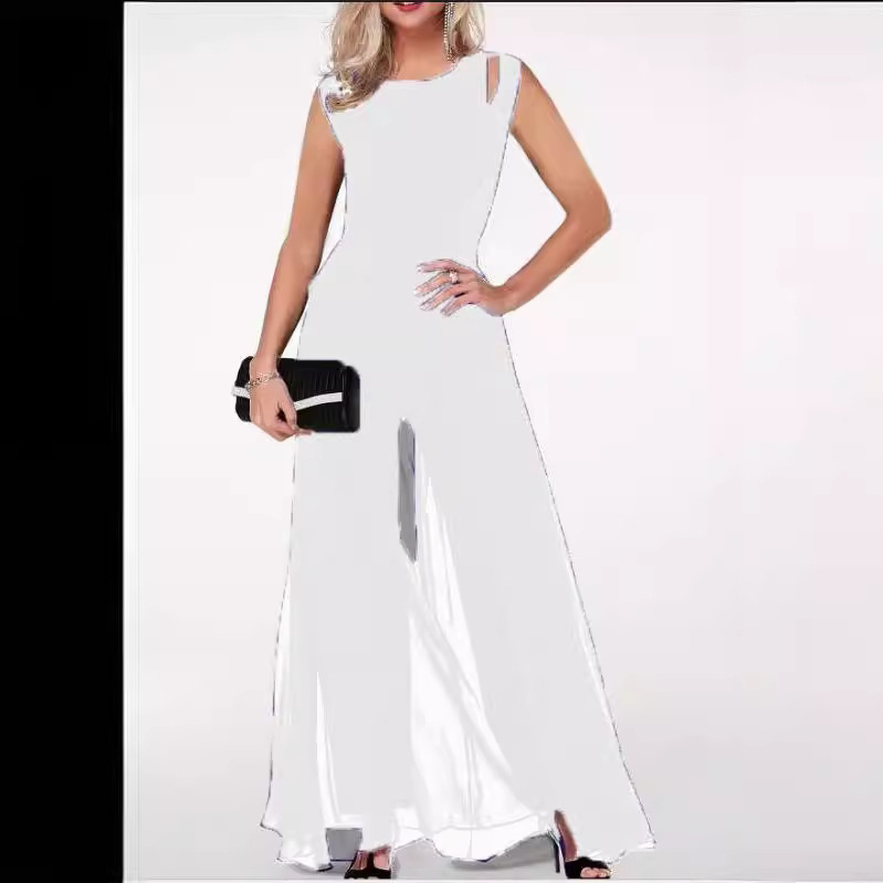 2023 Amazon Independent Station Сшитая тонная женская одежда с круглым вырезом без рукавов Полые молочные шелковые комбинезоны