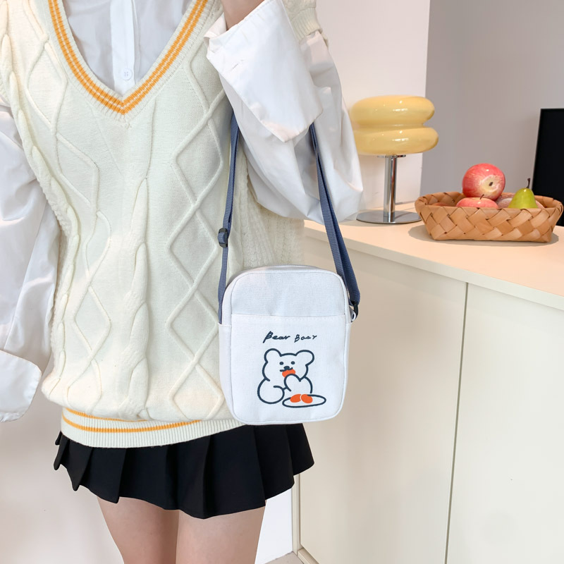 Главная страница > Высокоценная сумка через плечо Медведь Симпатичная сумка Мультфильм Студенческая Холщовая Сумка Повседневная уличная сумка для мобильного телефона
