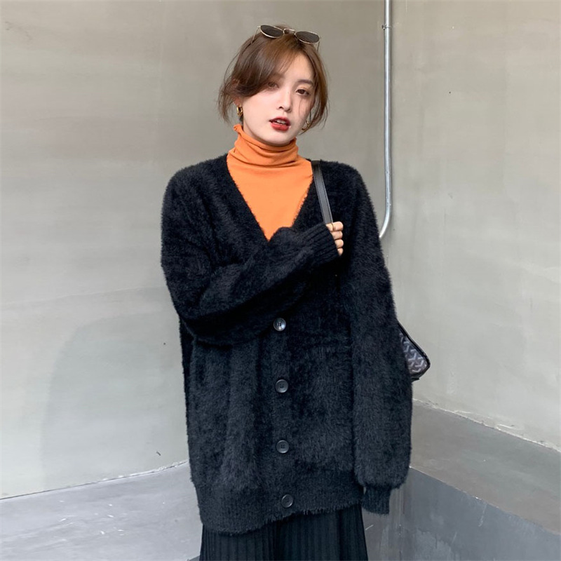 Главная страница > Японский Стиль Ленивый Стиль Модный норковый бархатный свитер Женское пальто 2023 осень и зима Новый свободный однотонный вязаный кардиган с V-образным вырезом