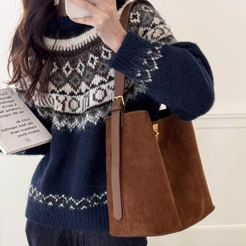 Главная страница > Замшевая сумка женская большая емкость 2024 новый осенний и зимний дикий ретро на одно плечо