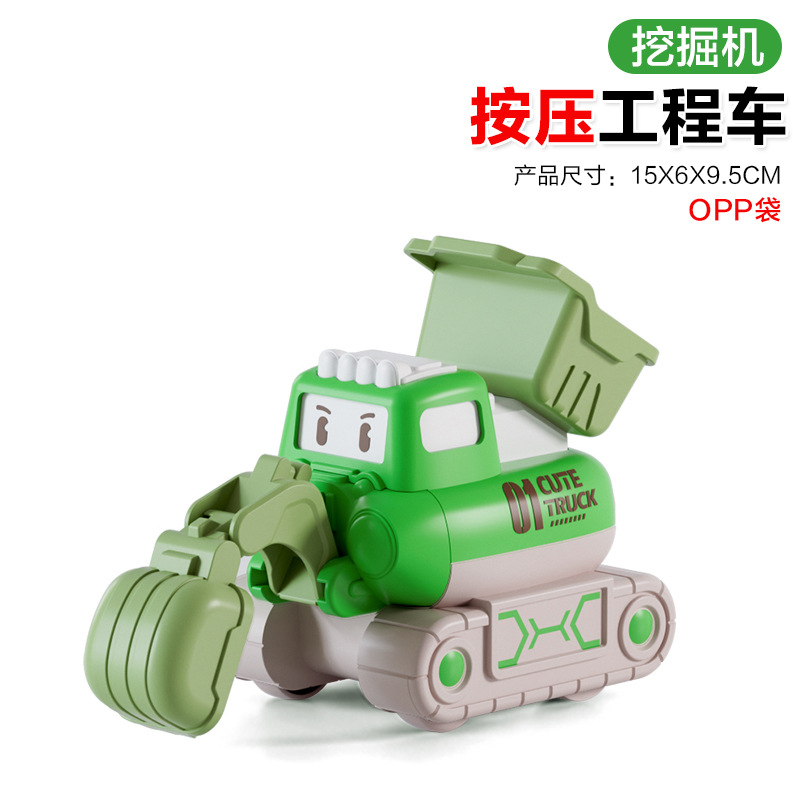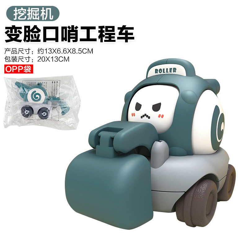 [OPP Bag] Зеленый экскаватор-свисток с изменяющимся лицом, инженерный автомобиль (инерционная модель), 65 г