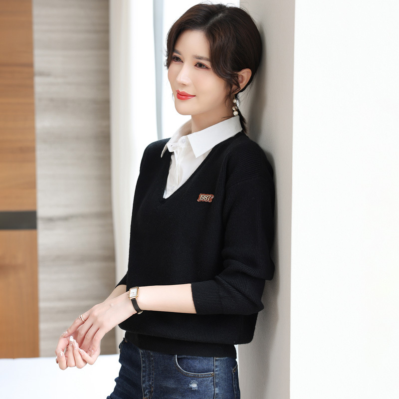Главная страница > Поддельные два женских свитера осень 2024 новая женская рубашка с длинными рукавами рубашка воротник нижняя рубашка иностранная топ