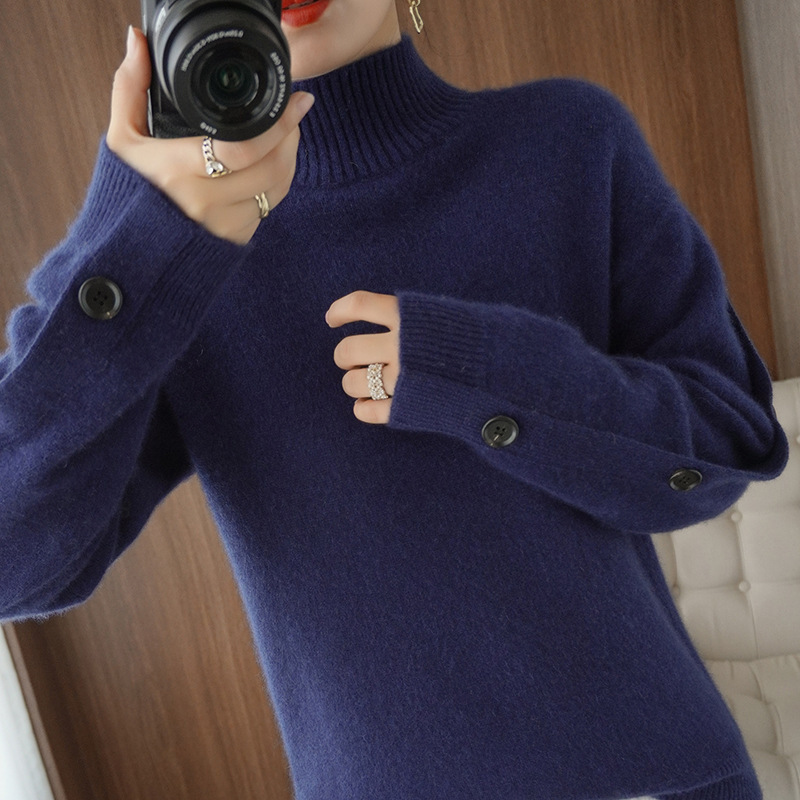 Главная страница > Новый женский свитер свободного кроя в корейском стиле на осень/зиму 2025 года, модный вязаный пуловер с воротником-стойкой, базовая кофта, женский топ