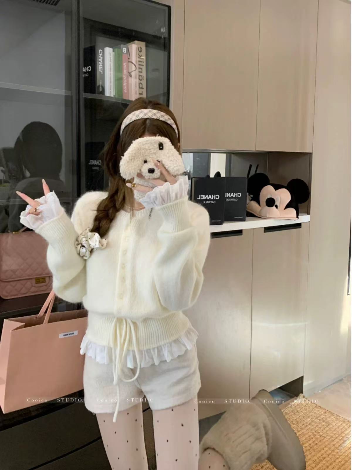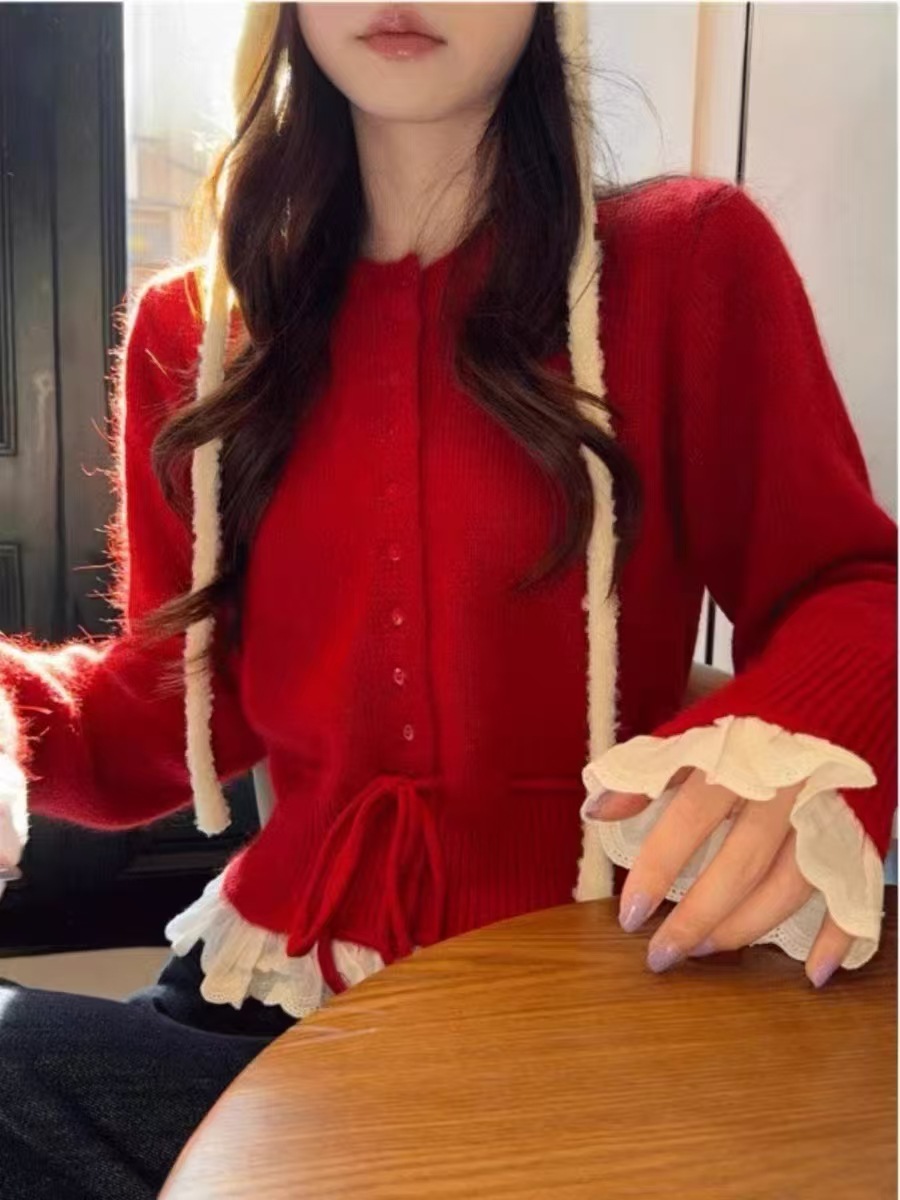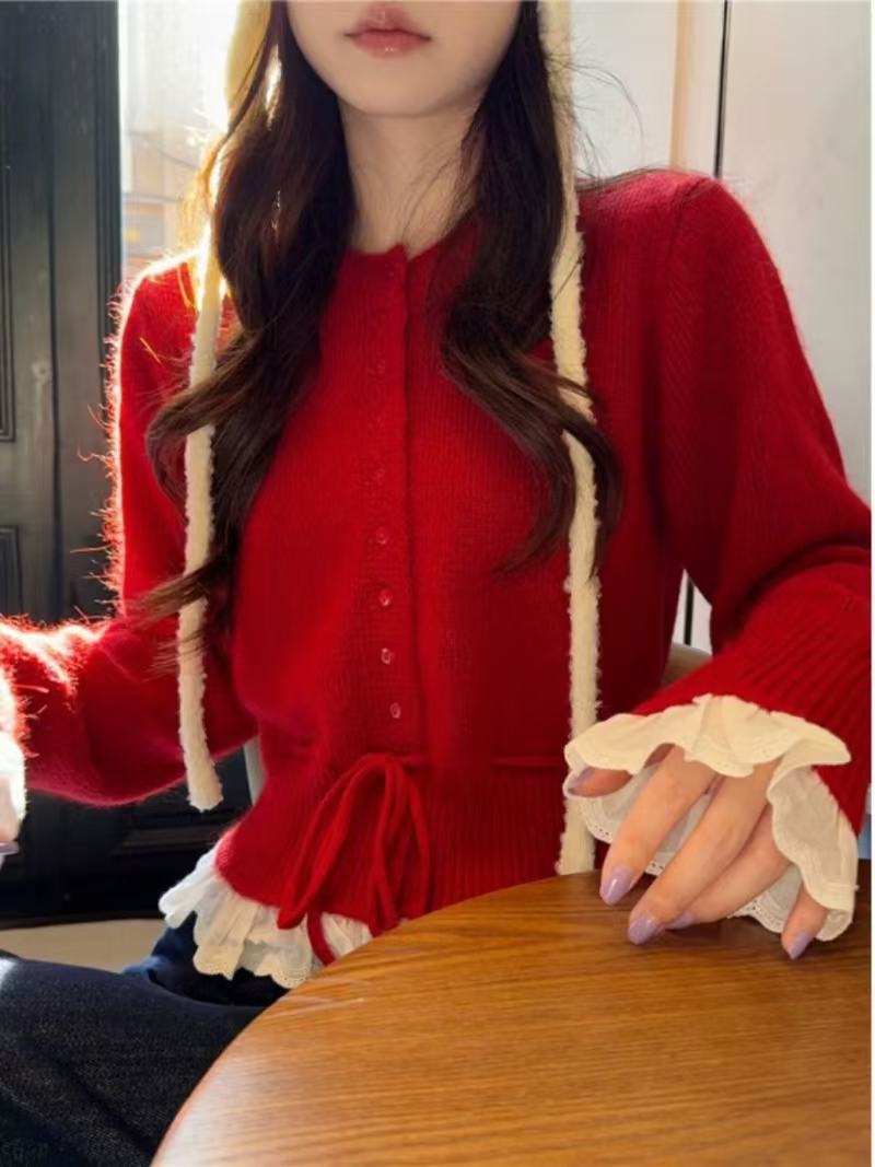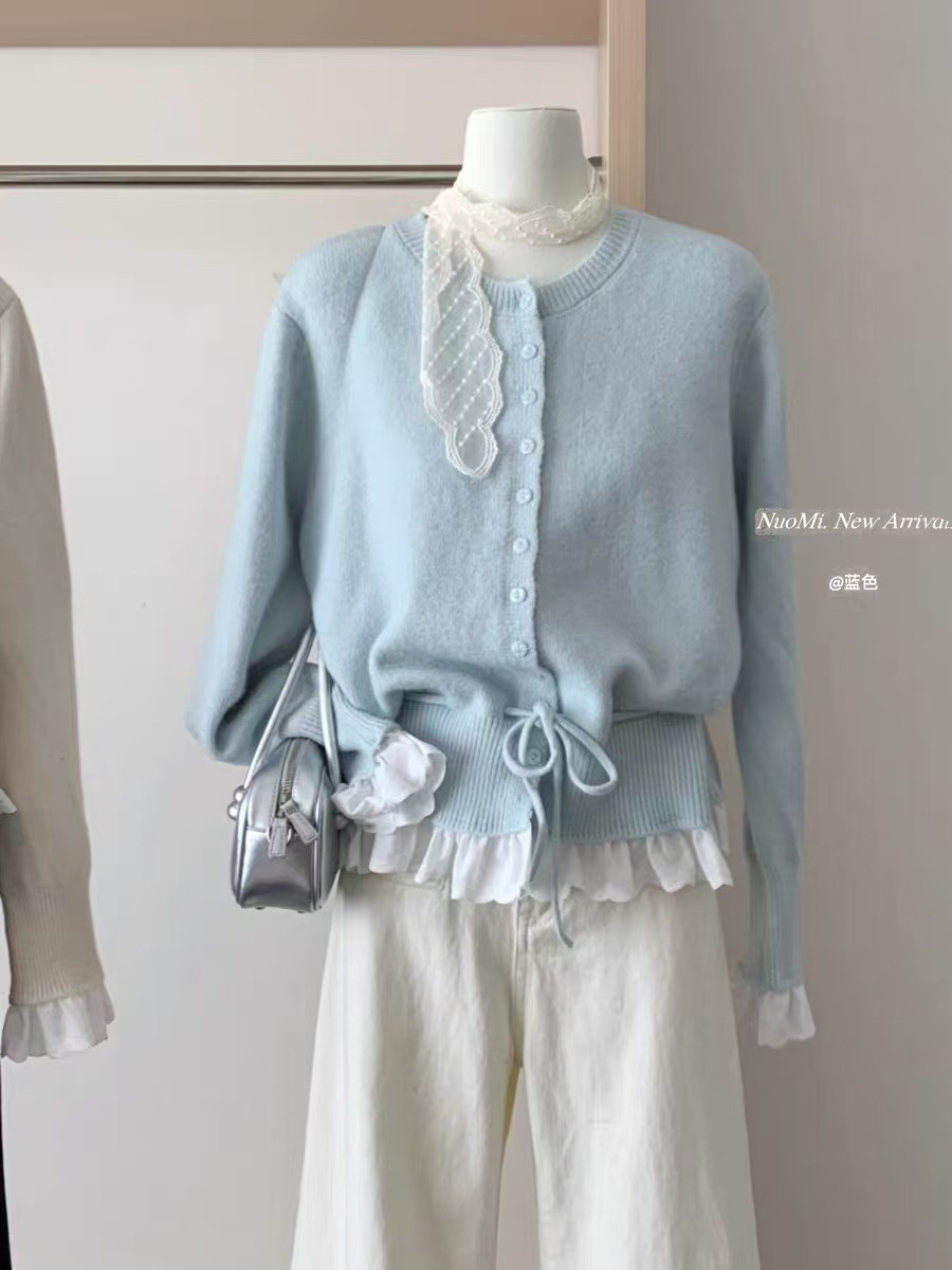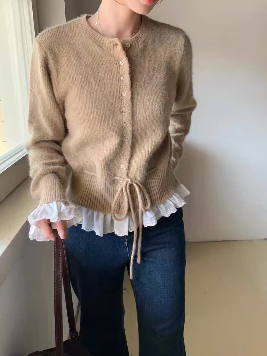 Главная страница > Поддельные две части корейского сладкого вычитания кружева с кружевом на талии свитер женский осень и зима новый трикотажный кардиган женский