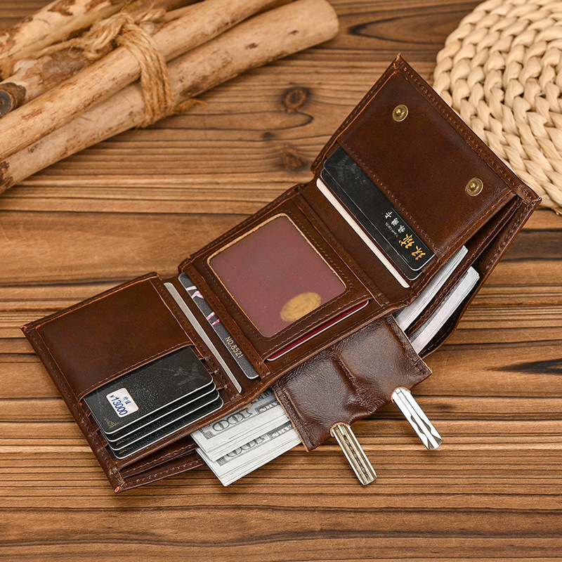 Главная страница > Горячий мужской кожаный кошелек Amazon Crazy Horse, винтажный кошелек с нулевым слоем из воловьей кожи, трехкратный Повседневный Кошелек