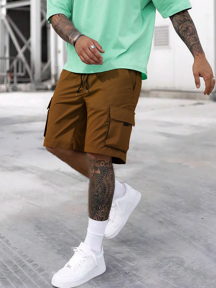 Главная страница > Летние повседневные шорты для мужчин, брюки-пятиштани, свободного кроя с карманами, универсальные, дышащие, модные молодежные брюки, простые и слегка эластичные.