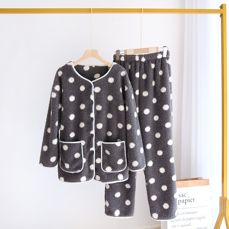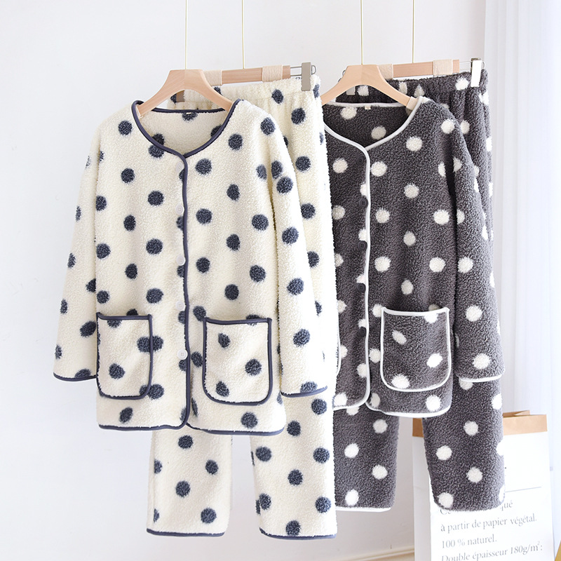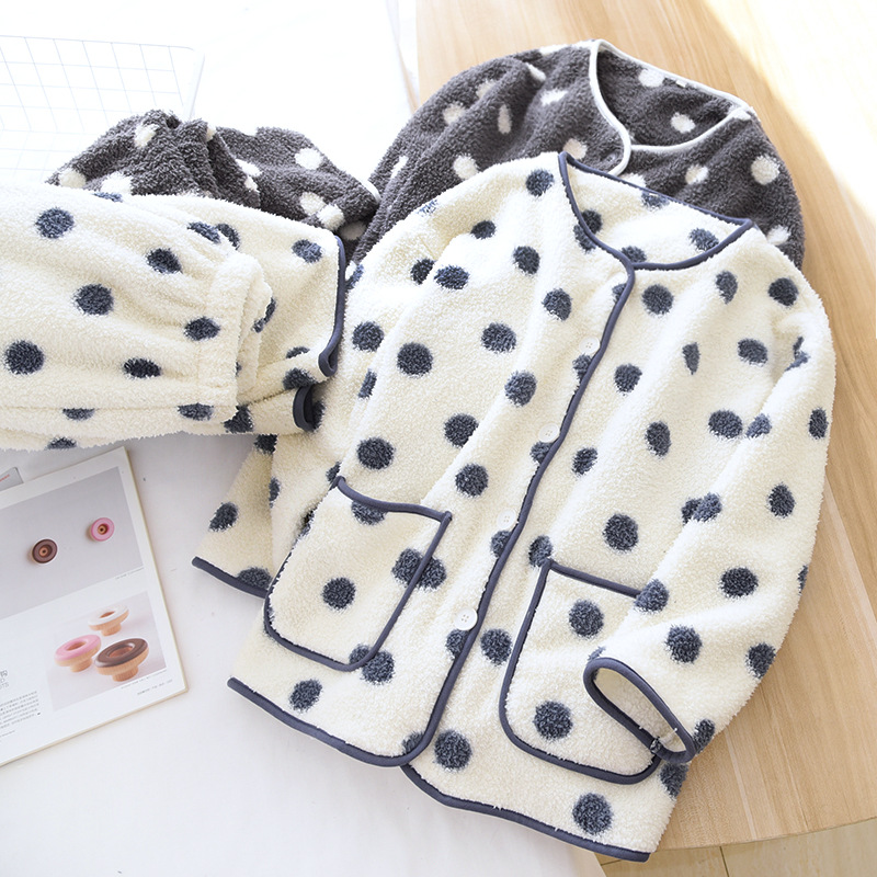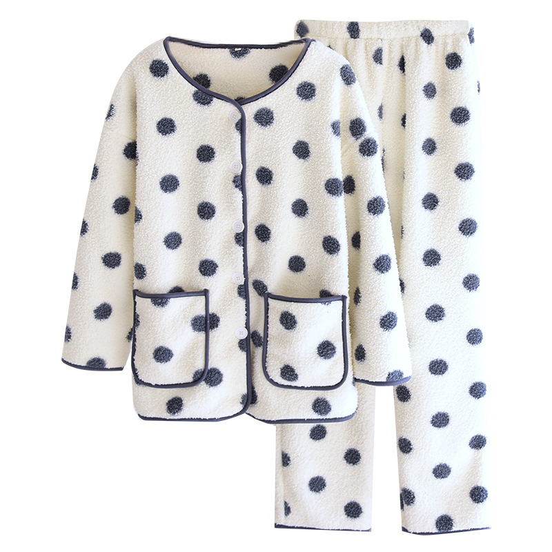 Главная страница > Зимние фланелевые пижамы в горошек женские новые волны Точка мягкий кардиган коралловый флис милый домашний костюм оптом