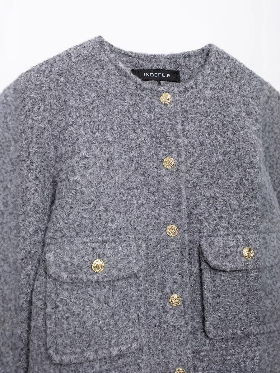 Главная страница > Модный темперамент новый бисерная кожа с круглым вырезом с длинным рукавом Короткая куртка куртка ZR внешняя торговля оптом европейский и американский стиль женской одежды