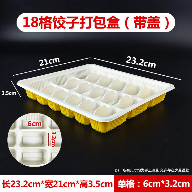 Желто-белая коробка для пельменей с 18 отделениями и крышкой