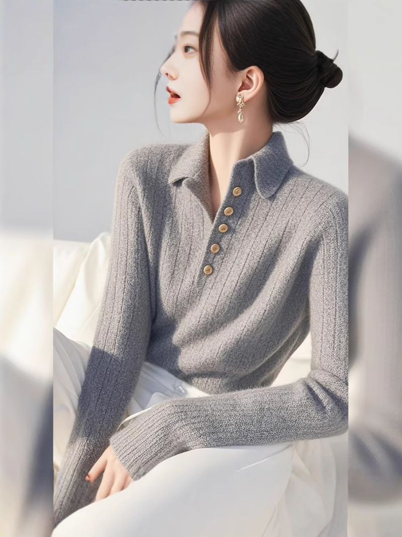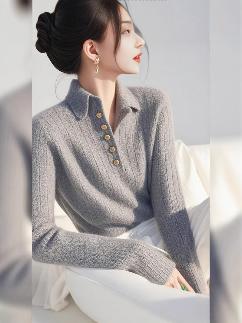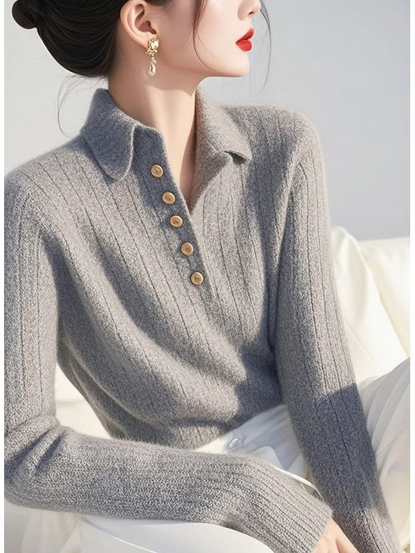 Главная страница > Супер красивый серый свитер с лацканом женский осенний и зимний новый ленивый ветер мягкий клейкий тонкий топ с трикотажным свитером